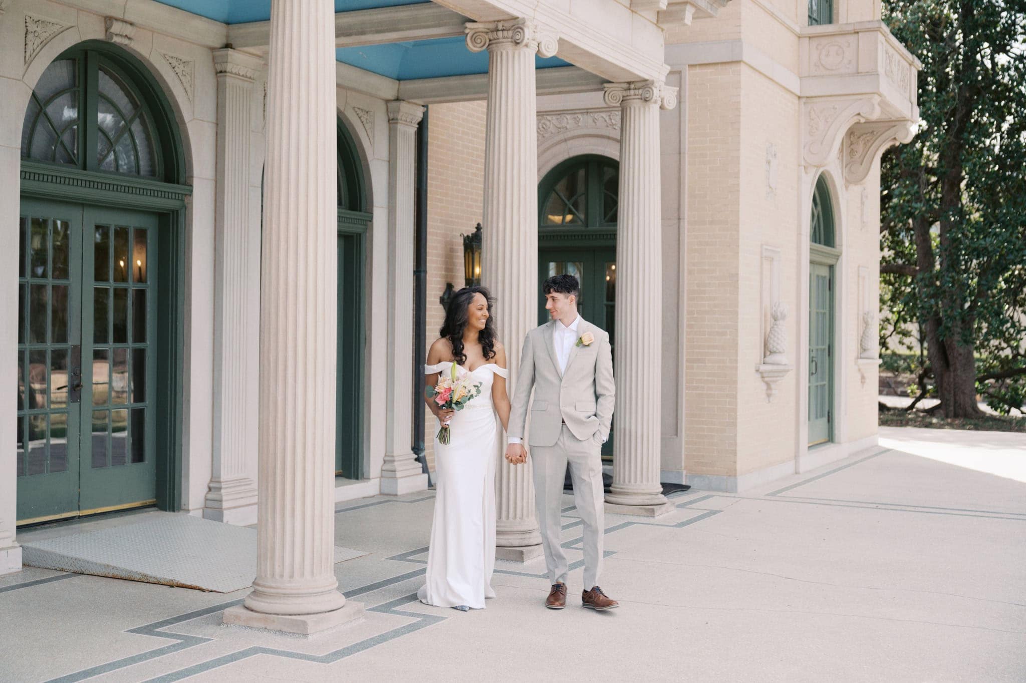 The ceremony was intentionally small, with only immediate family present. It was quiet. Meaningful. Full of soft laughter, loving glances, and that fluttery kind of emotion that only happens when you know you’re witnessing something truly significant. After a few happy tears, hugs, and heartfelt congratulations, the newlyweds wandered hand-in-hand through the mansion and surrounding grounds, soaking in their first moments as husband and wife. The Mansion itself became a character in their love story. Its vintage architecture and sunlit nooks providing a stunning canvas for their first day as a married couple. Johnathan and Bricelynn’s elopement reminded us that sometimes the most powerful moments are the quiet ones. No frills. No crowd. Just love, nature, and a place that feels like magic.