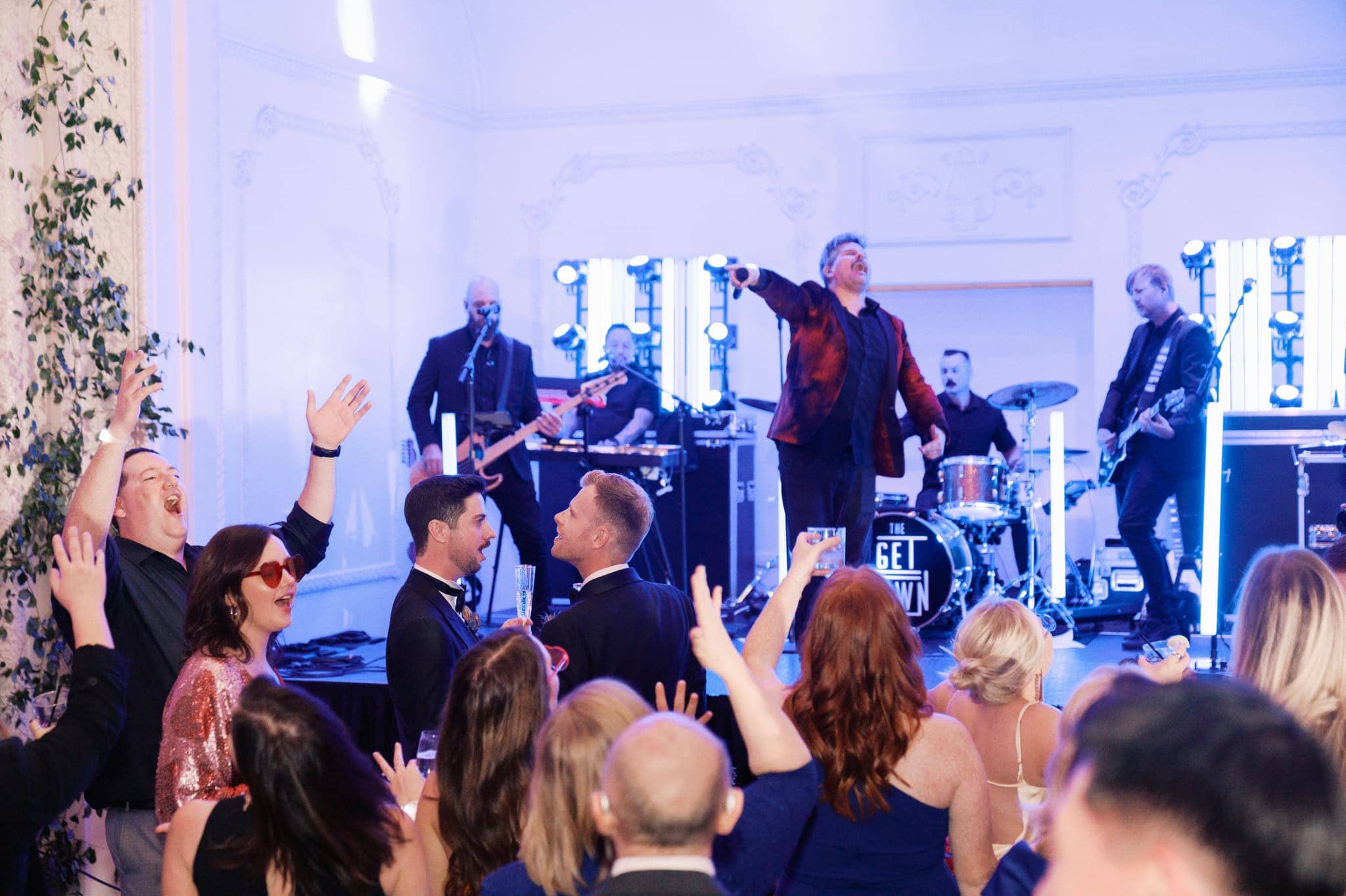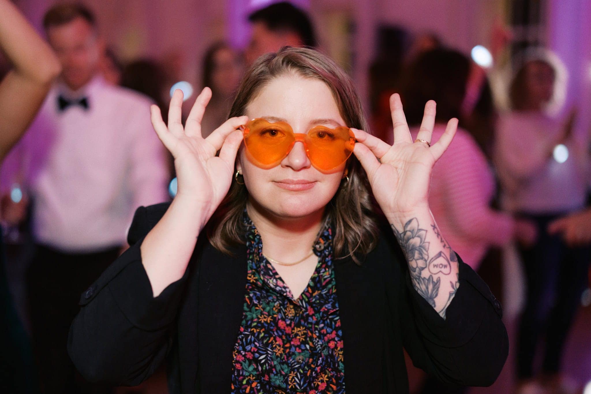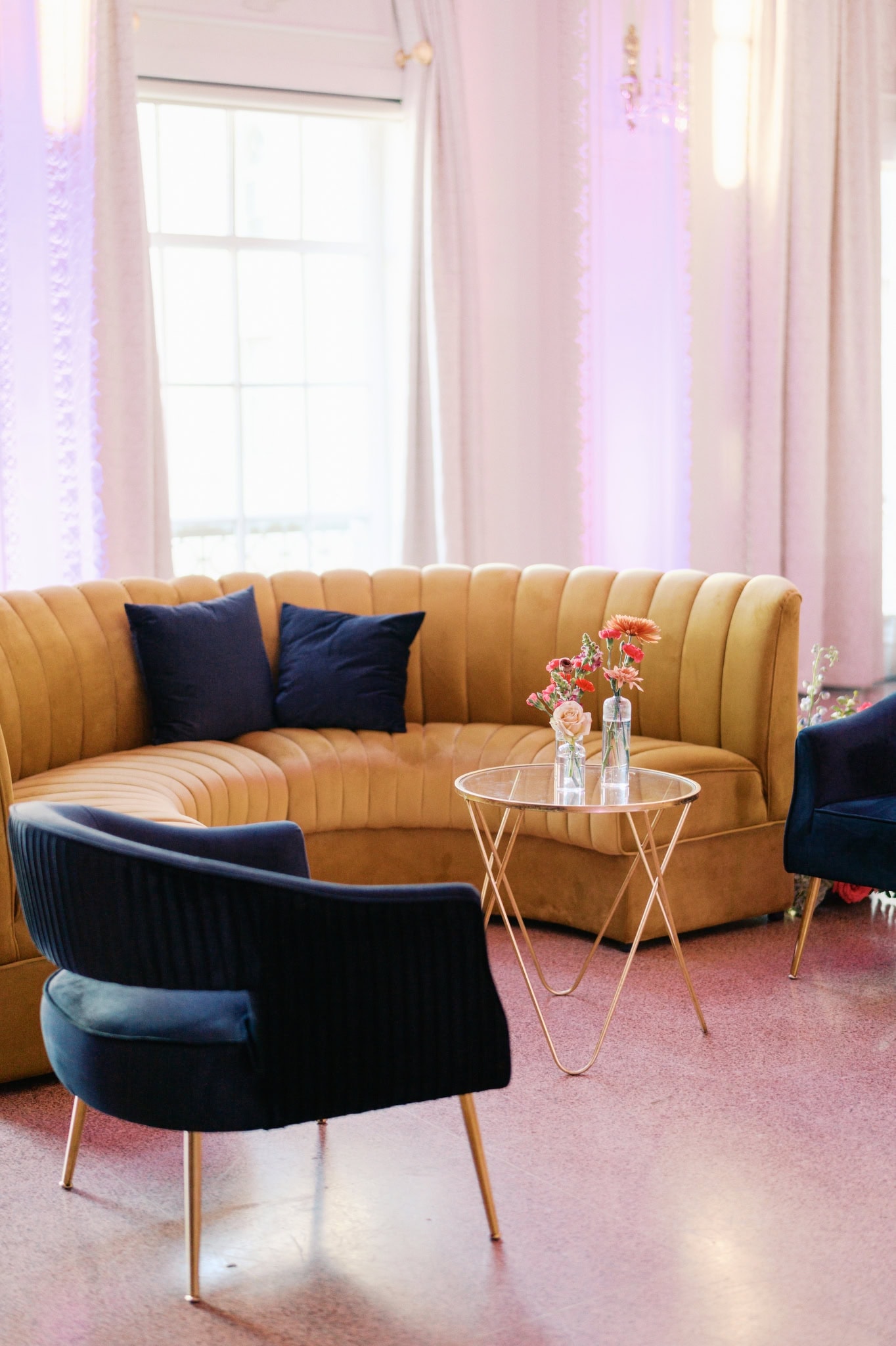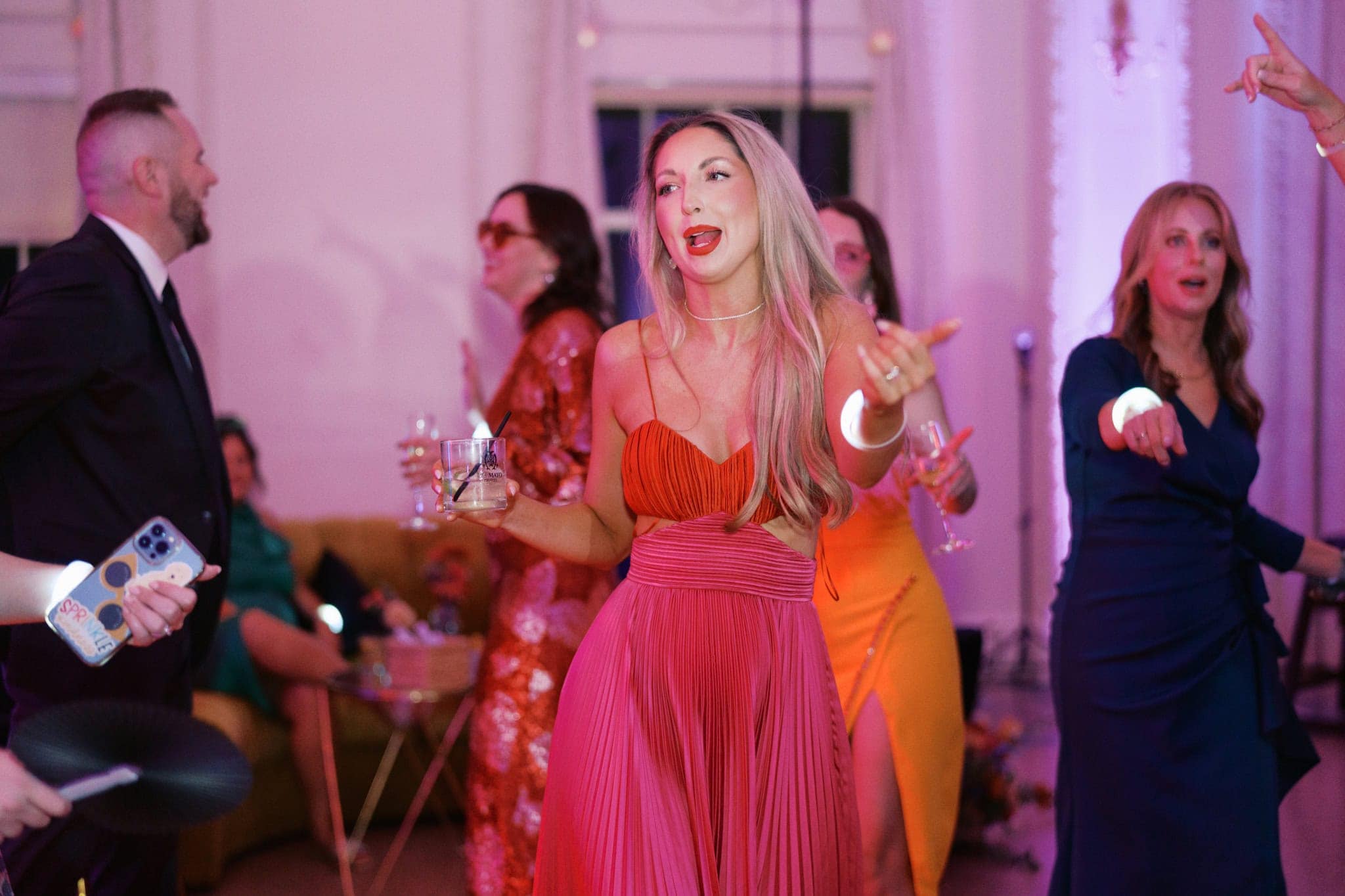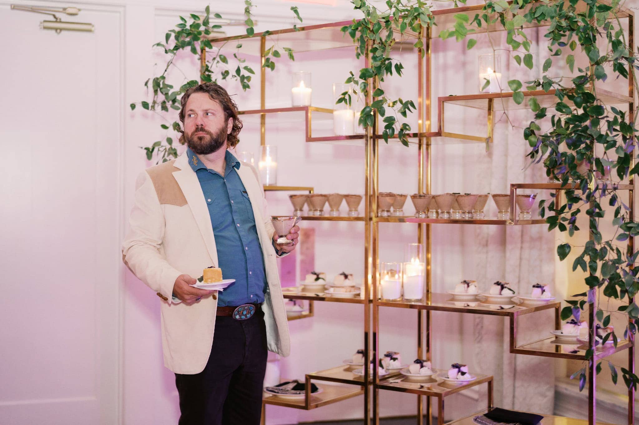 The reception brought the ballroom to life. Under a soft, romantic purple glow, The Mayo’s historic charm and dramatic windows transformed into something truly magical. Gold accents sparkled, flowers bloomed under candlelight, and a shelf filled with blueberry cheesecakes and desserts tempted every guest. One unforgettable touch? A live cigar roller, hand-rolling cigars on-site. It was equal parts performance, favor, and conversation starter. As the sun set, the string quartet gave way to a rocking live band, and the ballroom became a full-blown celebration. The dance floor stayed full until late into the night, when Brett & Ryan were swept into a whirlwind of streamers, sparklers, laughter, and love. Their wedding was more than beautiful. It was intentional, soulful, and deeply personal. From quiet rooftop moments to the rhythm of the dance floor, Brett & Ryan’s day was a celebration of love, partnership, and finding joy in the in-betweens.