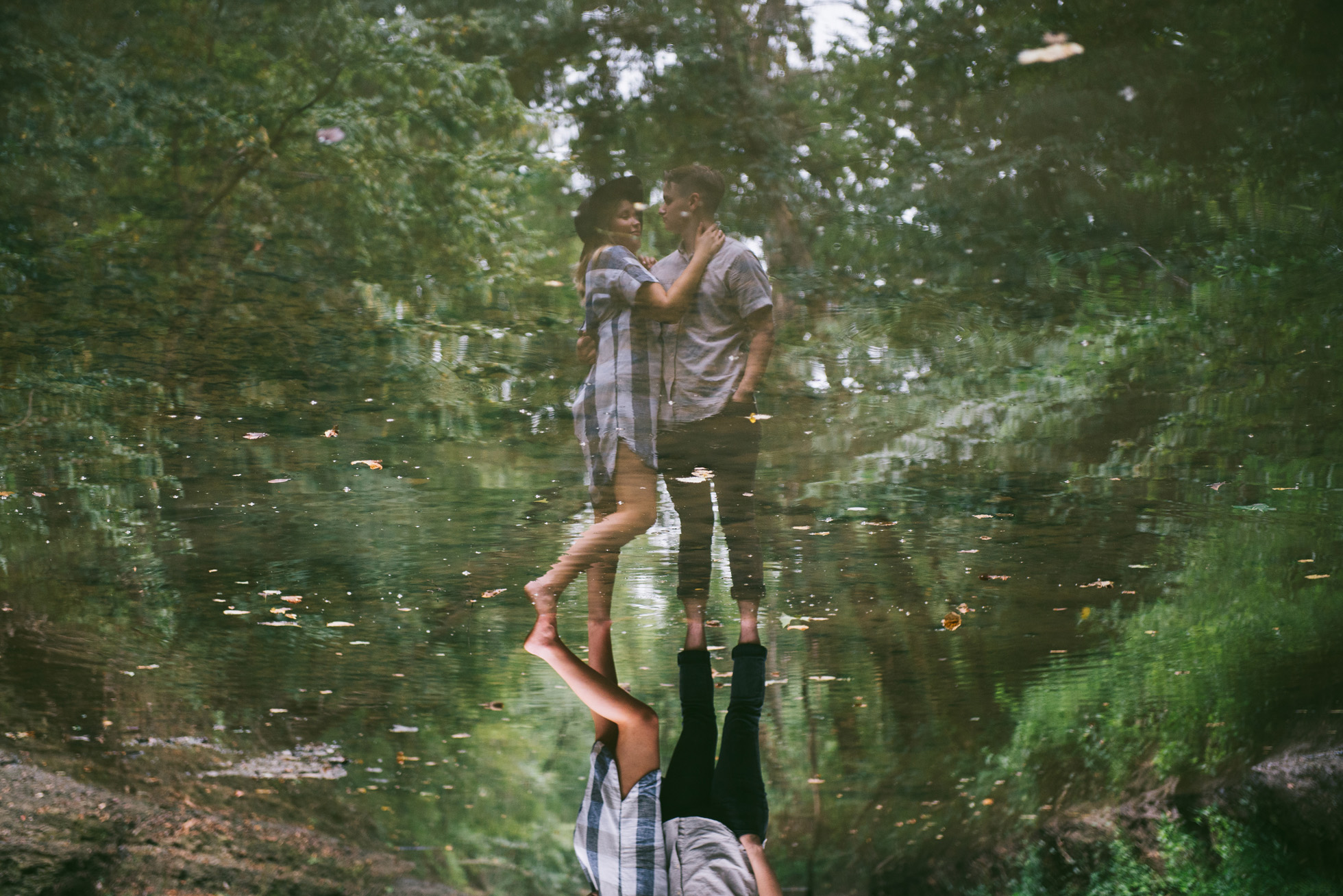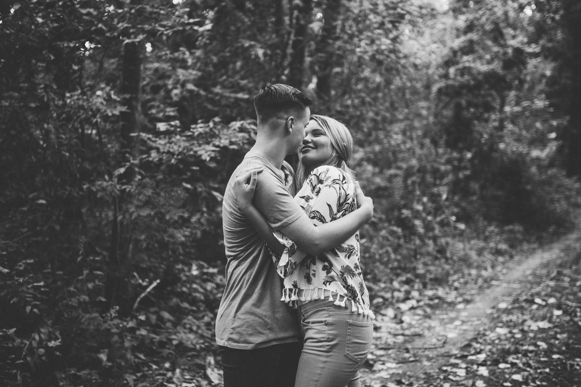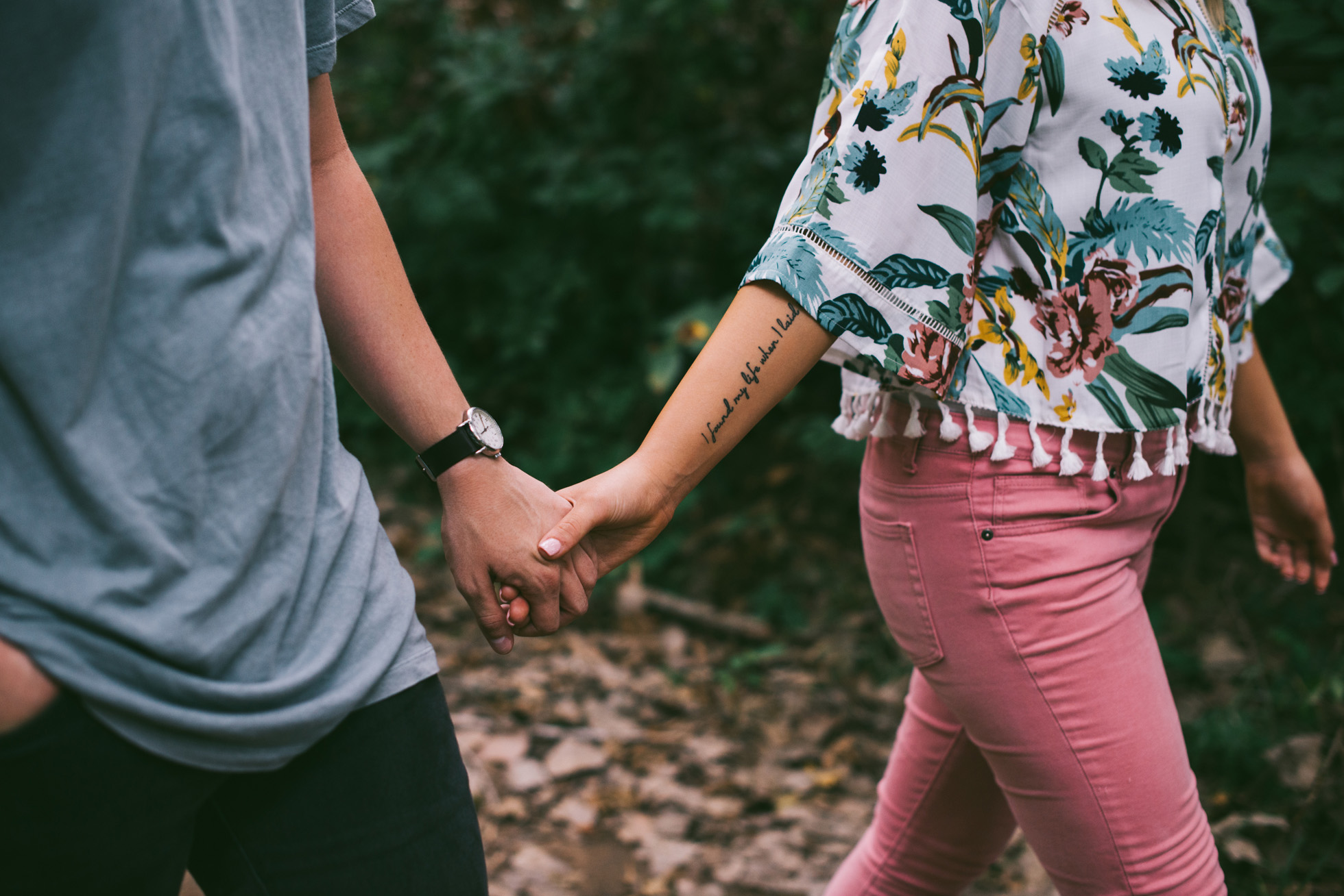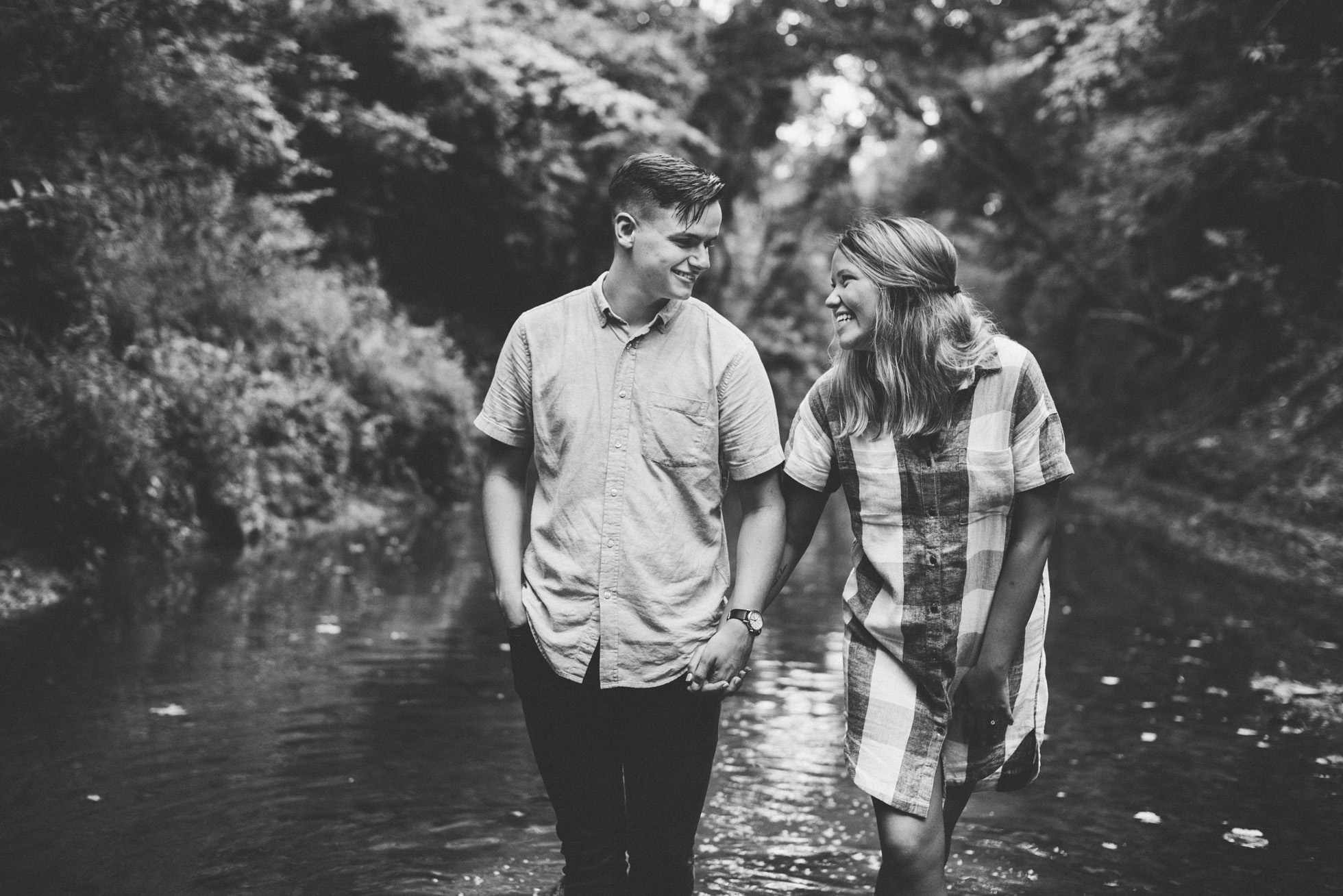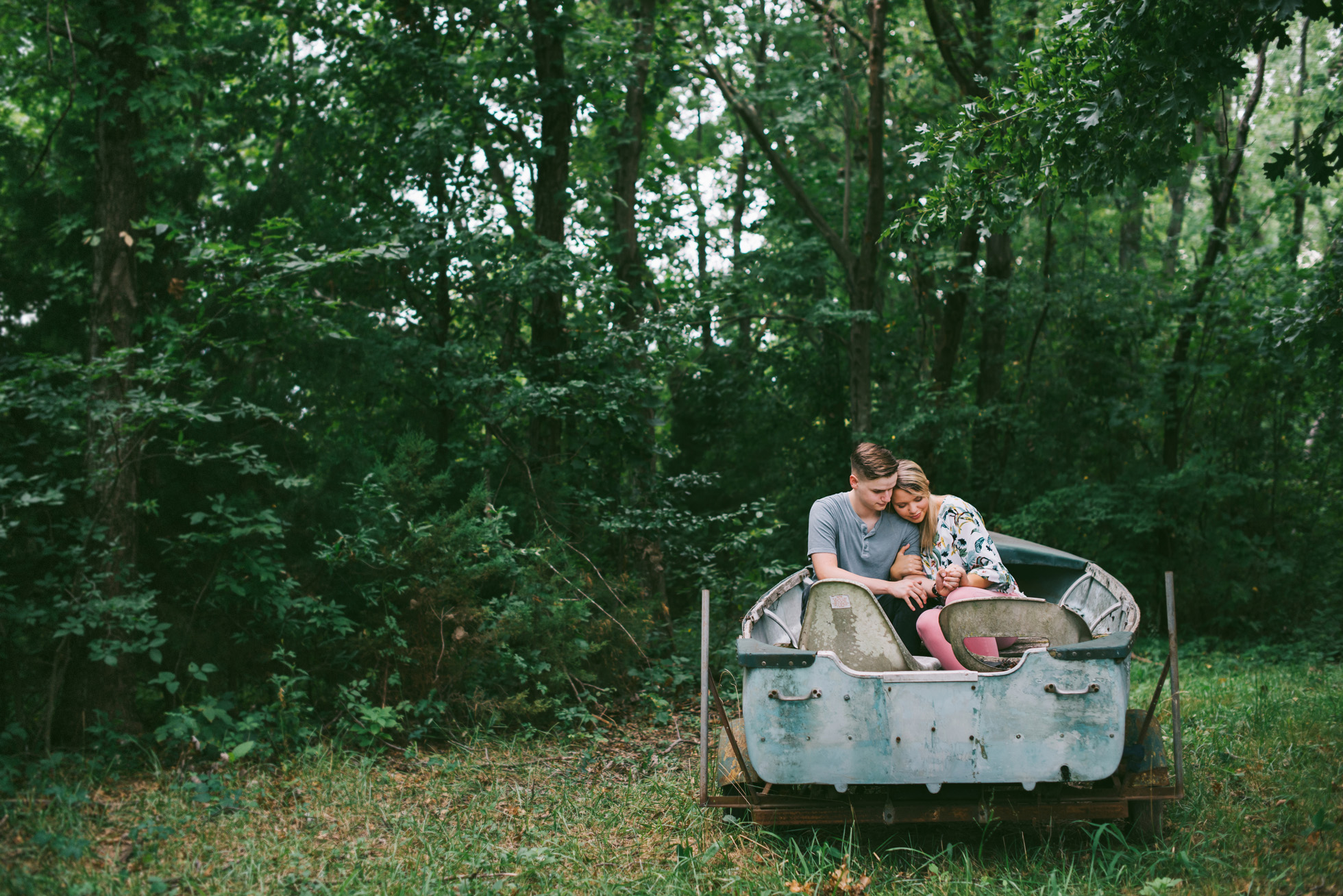 This wooded paradise is filled with childhood memories, summer love, towering trees, and a hidden creek. It was the perfect place to bring back memories and explore all over again for Kyler and Tess’ engagement session. The place, just outside of Tulsa, OK, is one of a kind. It’s actually Tess’ grandparents’ backyard where they spent many summer breaks together. The land is now an established forest overgrown with vines but her grandparents remember originally planting the trees years and years ago. No wonder this place is filled with so many fond memories and stories shared. Kyler & Tess are one of the most fun couples to hang out with. Kyler is pretty shy but funny with an inner punk waiting to break out. Tess is sweet but adventurous with a killer smile. You can see how much they love and care for each other when they are together, laughing at each other’s jokes or just strolling around enjoying each other’s company.