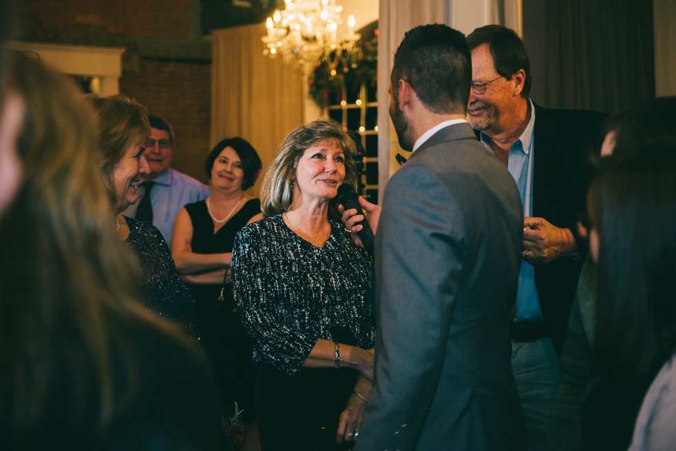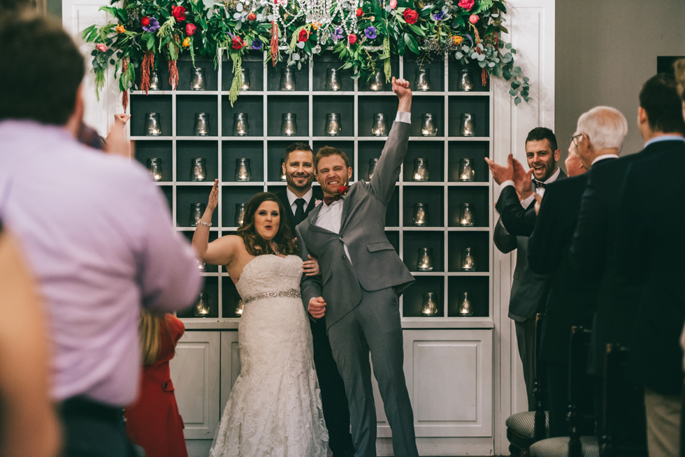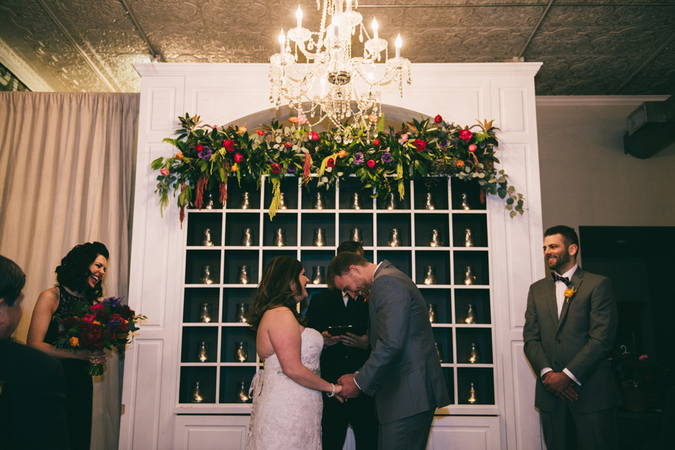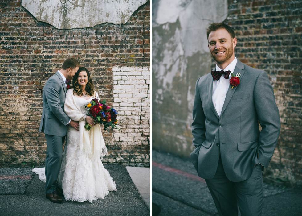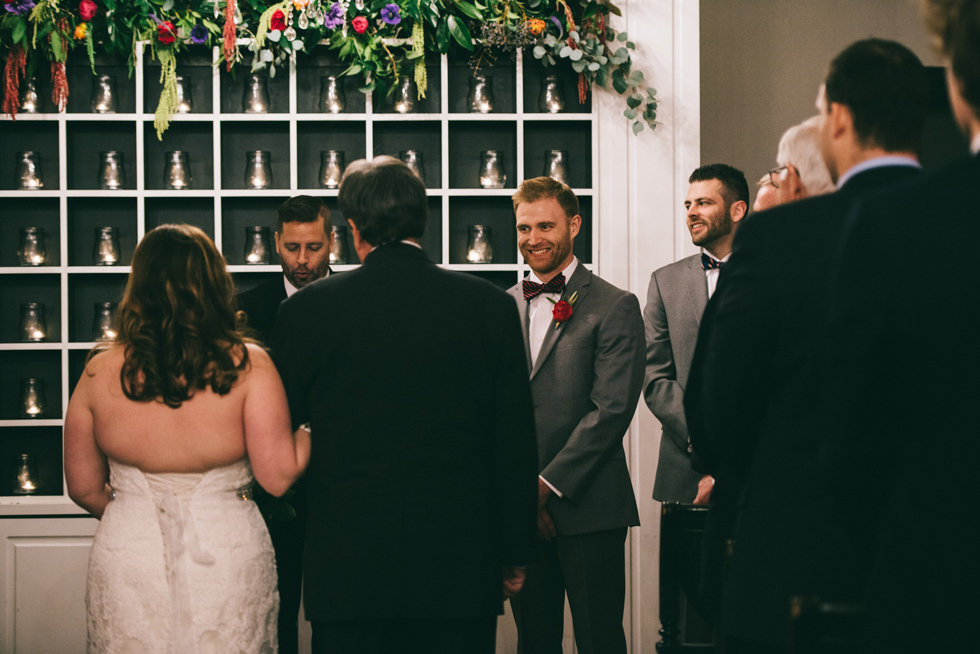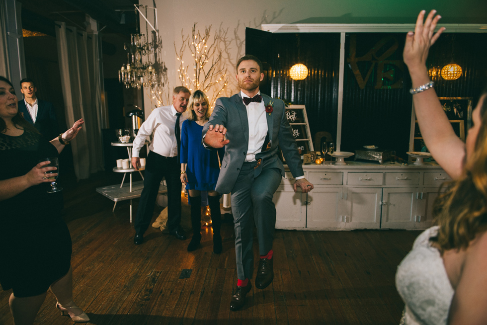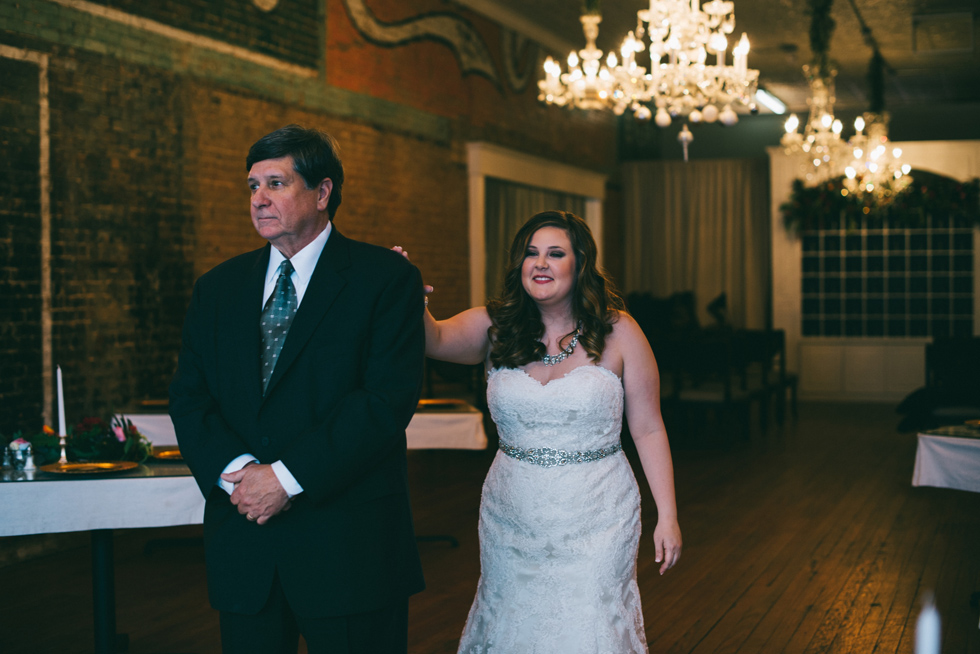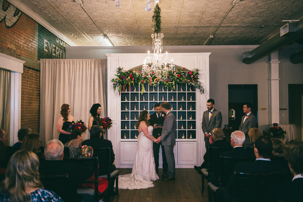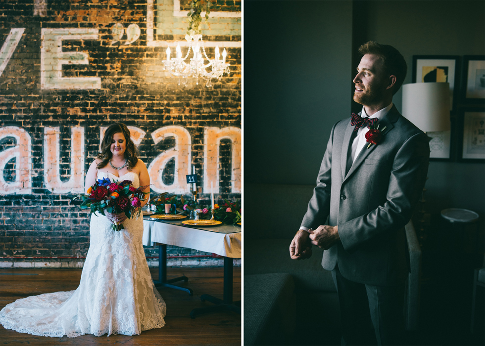 It was our first time to McKinney, TX and we quickly discovered that it is a very special town. It’s just outside of Dallas but it is its own little world. Cory and Lauren got married at Gather in the heart of downtown McKinney. The downtown is exactly what you’d always hope a downtown could be. With Christmas around the corner, the sidewalks were full of windows shoppers popping in and out of specialty shops. At night it stays alive with Christmas carolers on the corner. Their wedding was even more amazing and perfectly fit this storybook town. Stepping into the venue, the atmosphere of the town follows you in with exposed brick walls and lots of chandeliers. I love the jewel tone colours Lauren chose, the rustic details, and all the old world charm. Everything was so pretty! The most beautiful part of the wedding was Cory and Lauren. You could see the excitement on their faces and all the love. Lauren looked so radiant. I love her dress and she had the most gorgeous bouquet. All the floral arrangements at their wedding were amazing. The wedding was a soiree of their closest friends and family and many people came from out of town to celebrate. Cory and Lauren both were so laid back and relaxed the entire time. It was truly a day full of heart and fun.