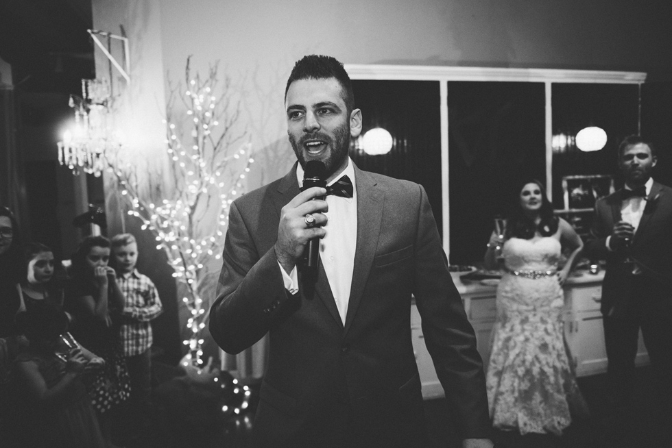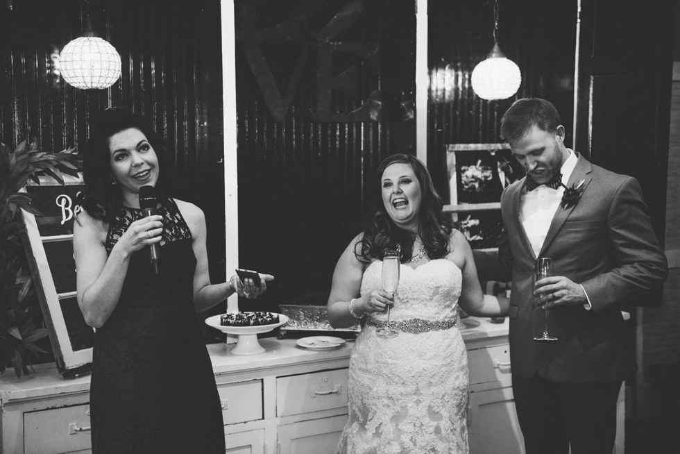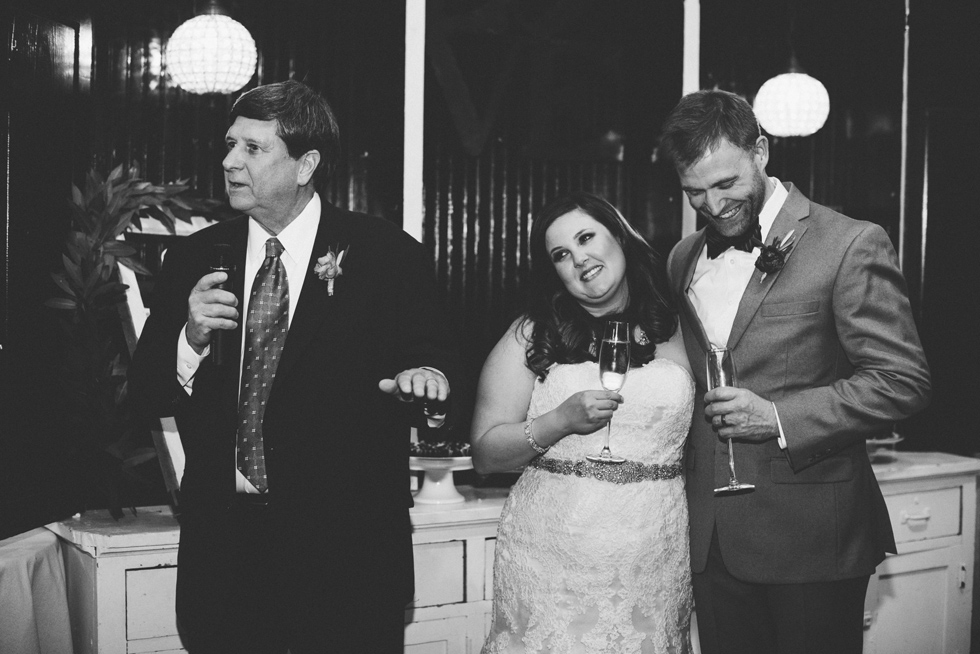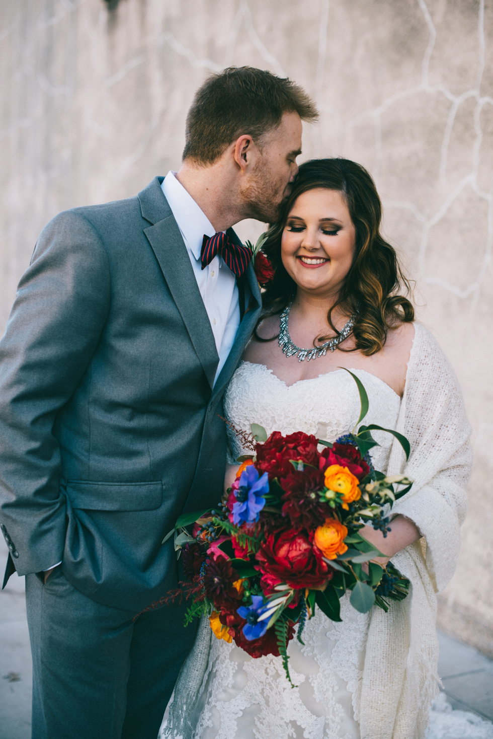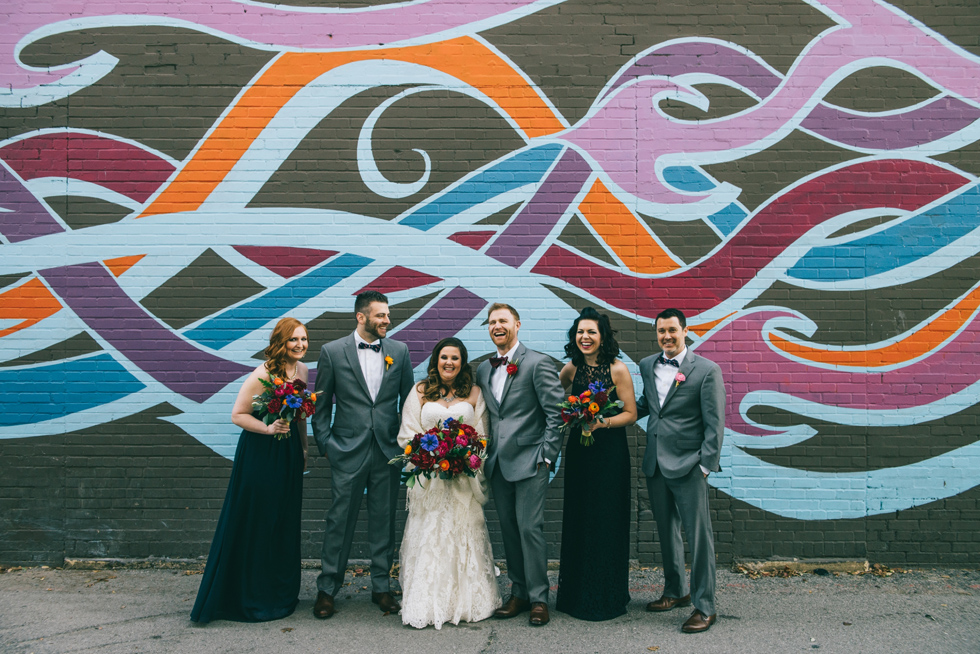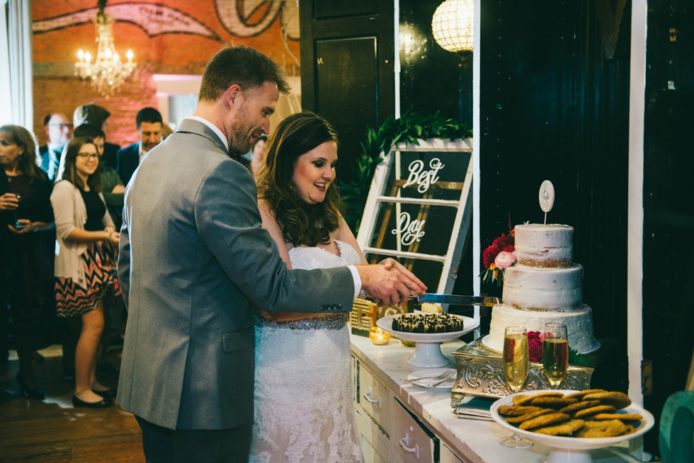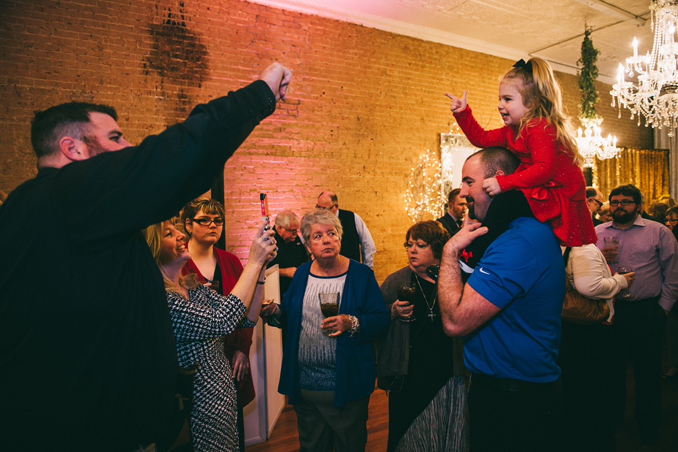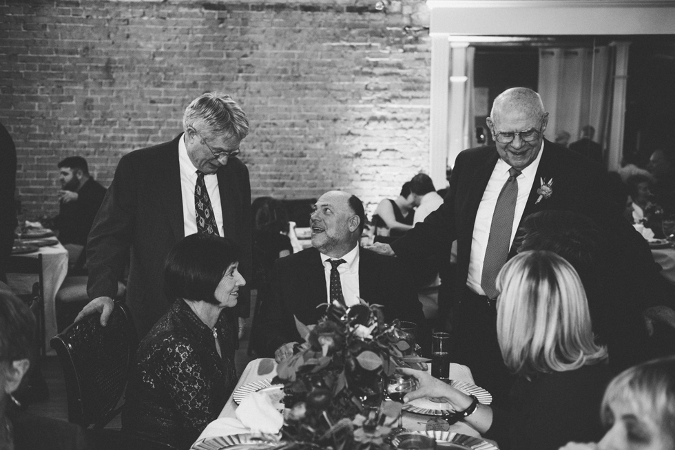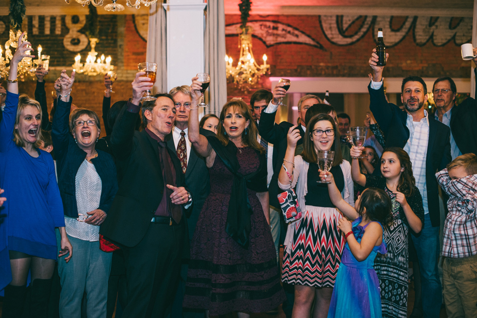 It was our first time to McKinney, TX and we quickly discovered that it is a very special town. It’s just outside of Dallas but it is its own little world. Cory and Lauren got married at Gather in the heart of downtown McKinney. The downtown is exactly what you’d always hope a downtown could be. With Christmas around the corner, the sidewalks were full of windows shoppers popping in and out of specialty shops. At night it stays alive with Christmas carolers on the corner. Their wedding was even more amazing and perfectly fit this storybook town. Stepping into the venue, the atmosphere of the town follows you in with exposed brick walls and lots of chandeliers. I love the jewel tone colours Lauren chose, the rustic details, and all the old world charm. Everything was so pretty! The most beautiful part of the wedding was Cory and Lauren. You could see the excitement on their faces and all the love. Lauren looked so radiant. I love her dress and she had the most gorgeous bouquet. All the floral arrangements at their wedding were amazing. The wedding was a soiree of their closest friends and family and many people came from out of town to celebrate. Cory and Lauren both were so laid back and relaxed the entire time. It was truly a day full of heart and fun.