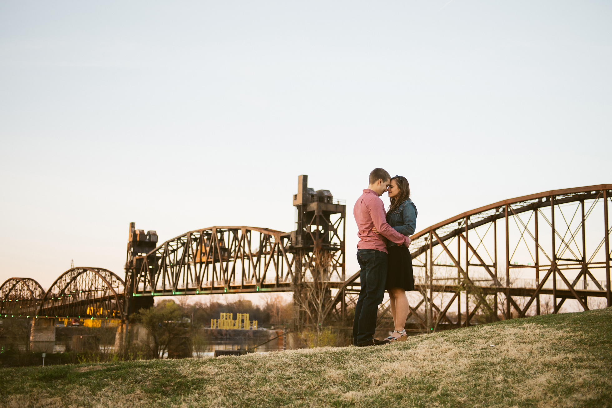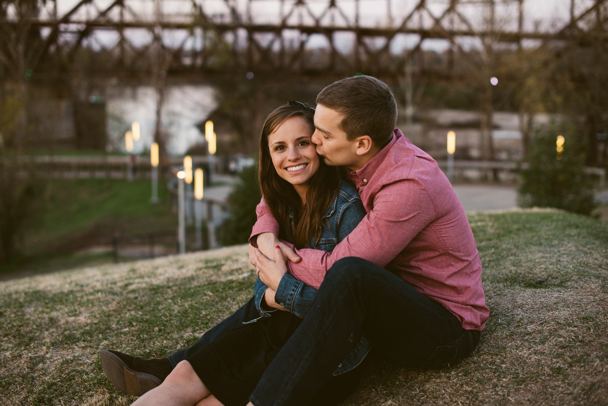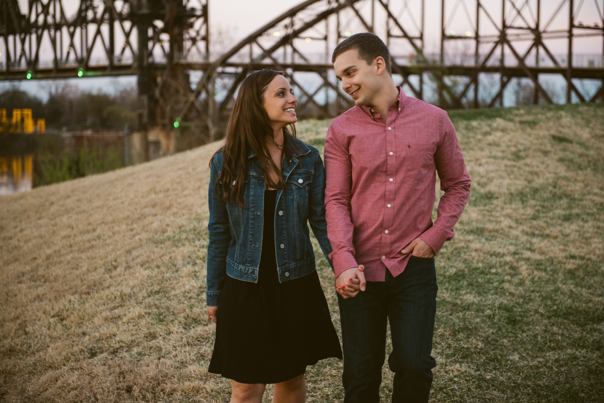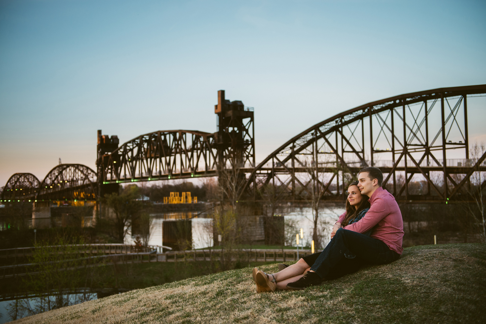 It seemed fitting to take a trip for their engagement session so we met them in Little Rock, Arkansas. The one thing I love about Little Rock is all the bridges! They seems to be everywhere. We met for their engagement session at a park near where he proposed…on a bridge! The Little Rock River Market District is a fun lively area that they explored and as the sun set we ended up on a hill overlooking the river. Little did we know they had memories of picnics on that exact hill. It was a perfect weekend!
