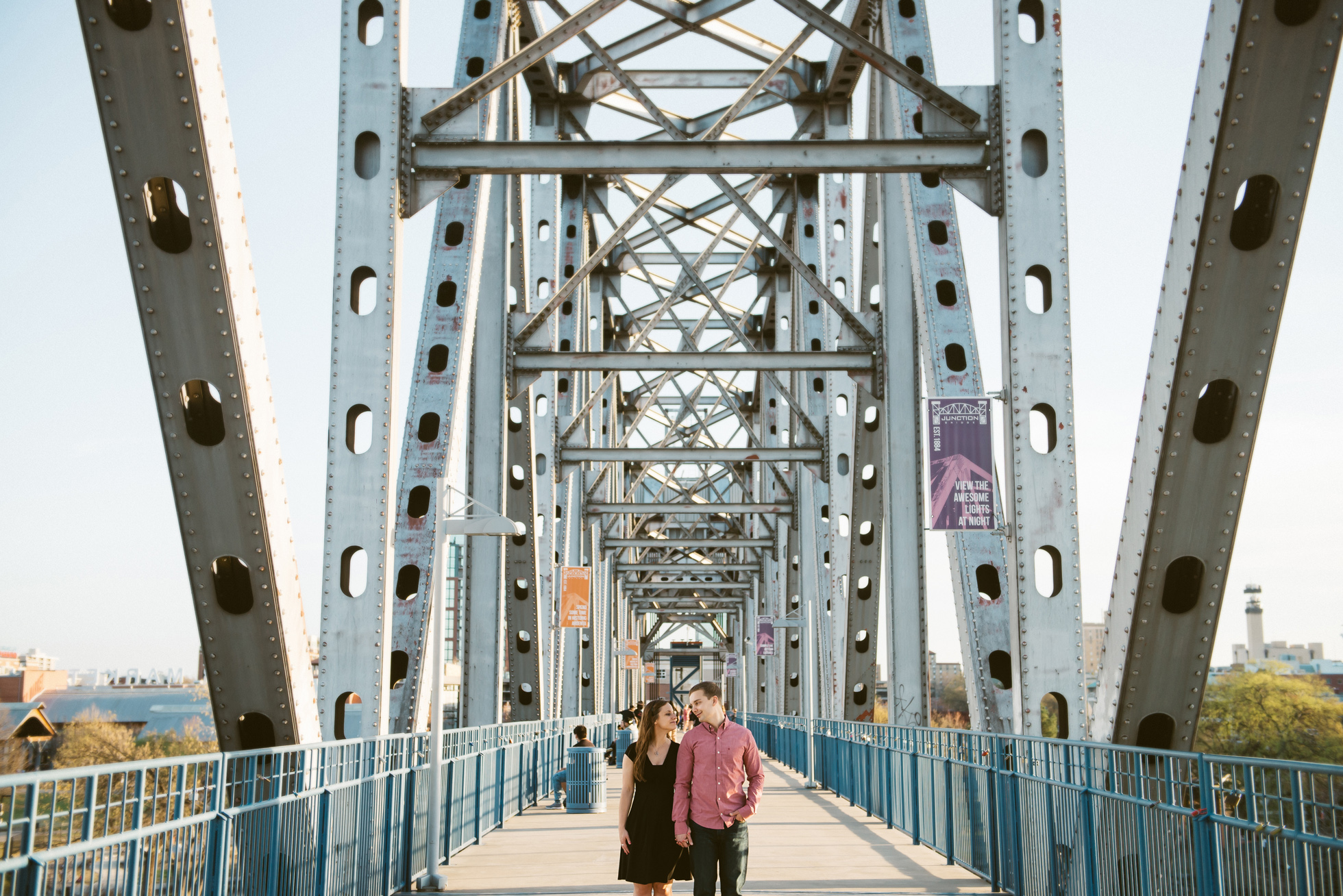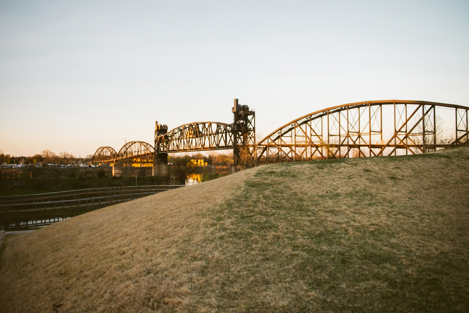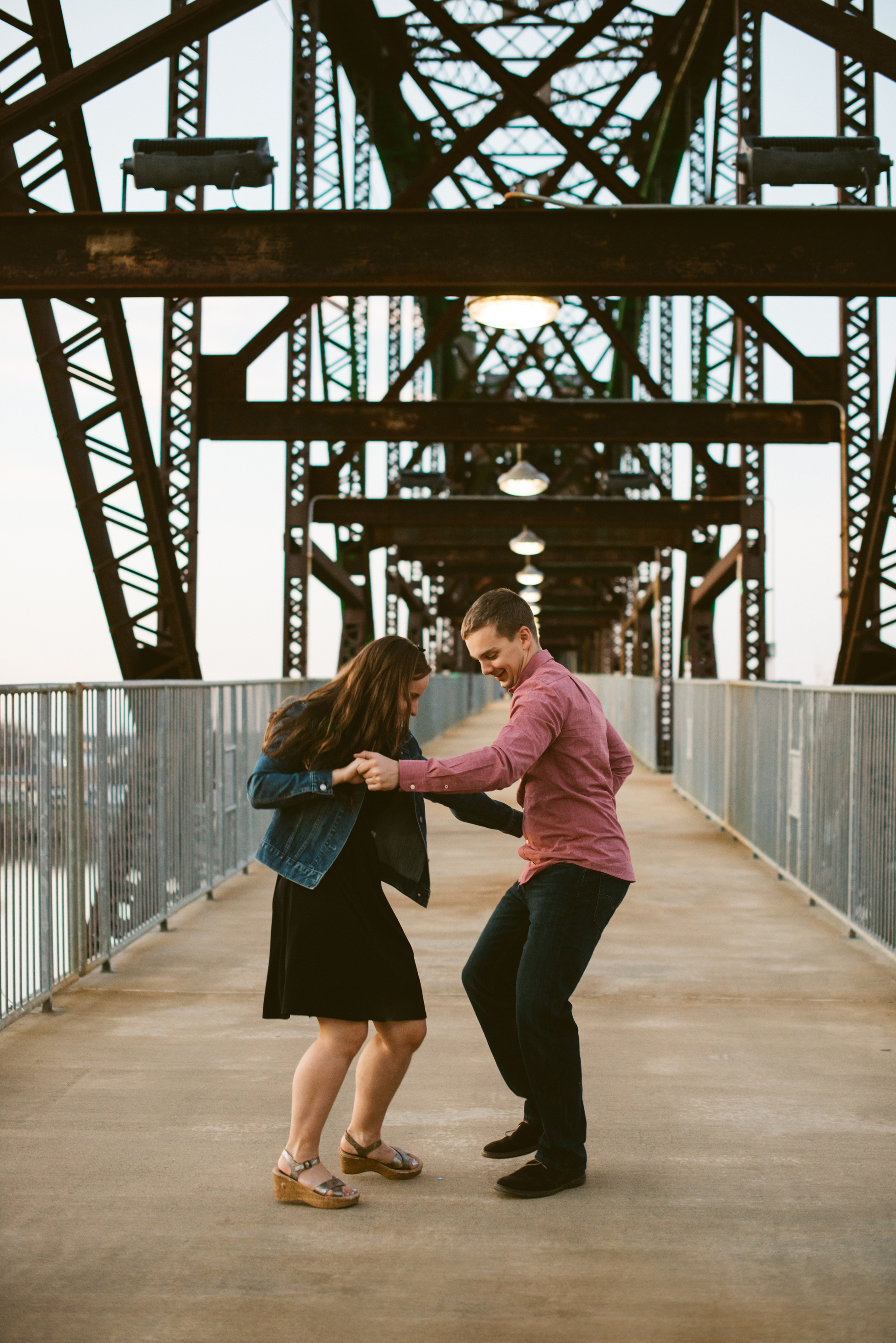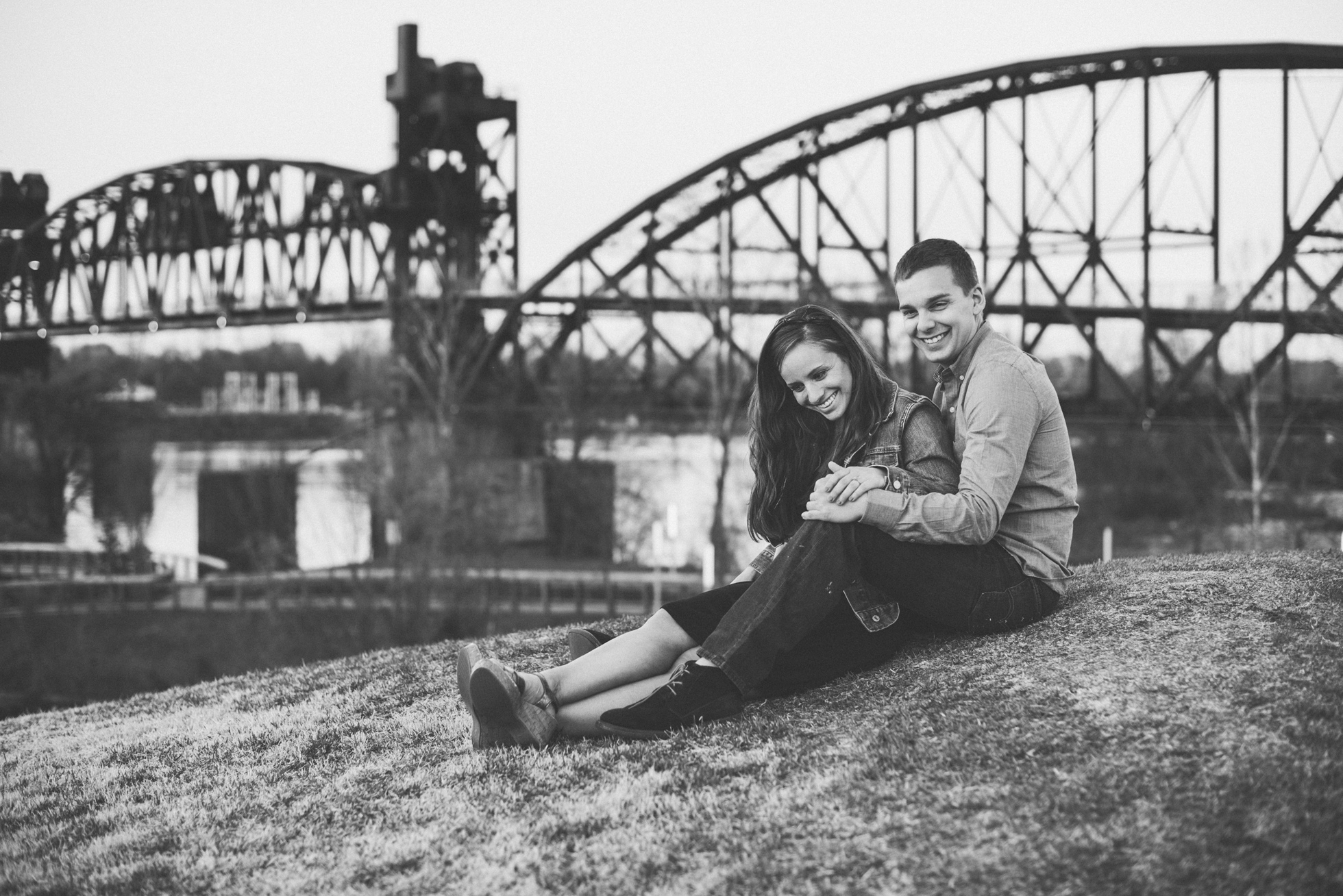 It seemed fitting to take a trip for their engagement session so we met them in Little Rock, Arkansas. The one thing I love about Little Rock is all the bridges! They seems to be everywhere. We met for their engagement session at a park near where he proposed…on a bridge! The Little Rock River Market District is a fun lively area that they explored and as the sun set we ended up on a hill overlooking the river. Little did we know they had memories of picnics on that exact hill. It was a perfect weekend!