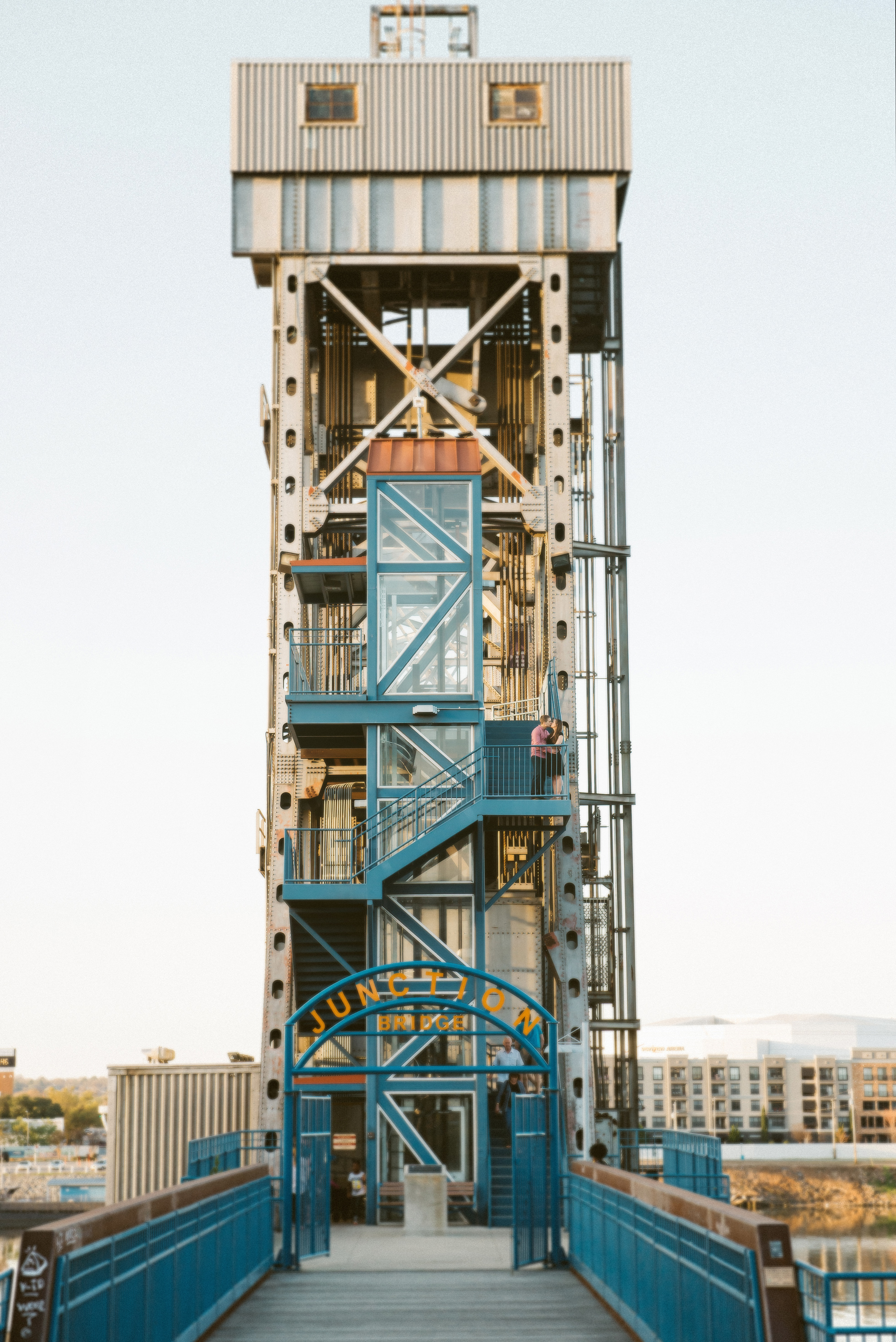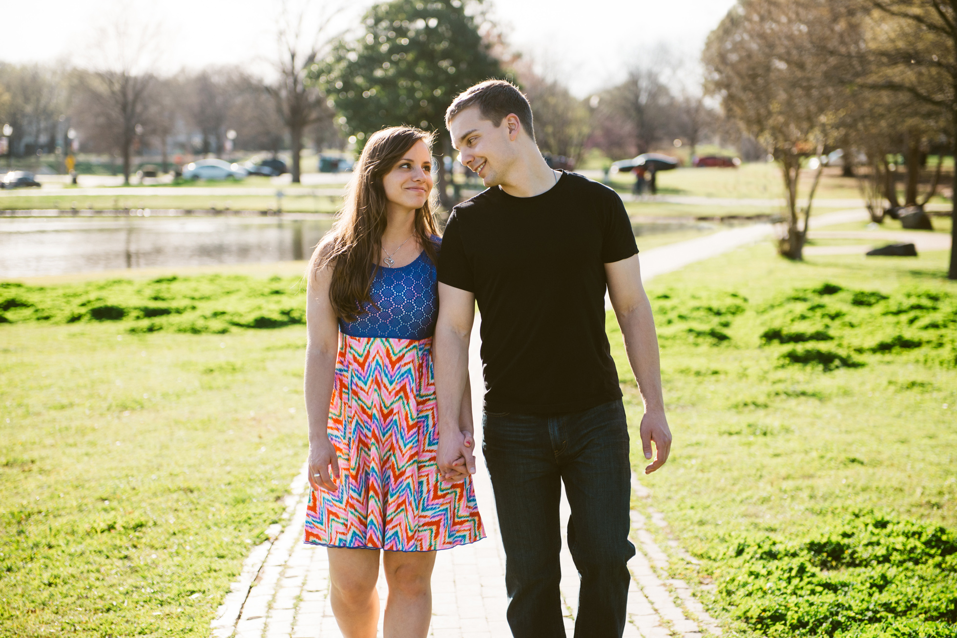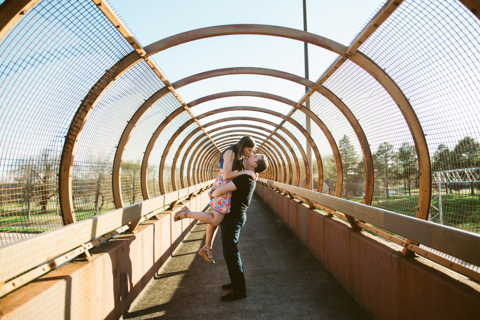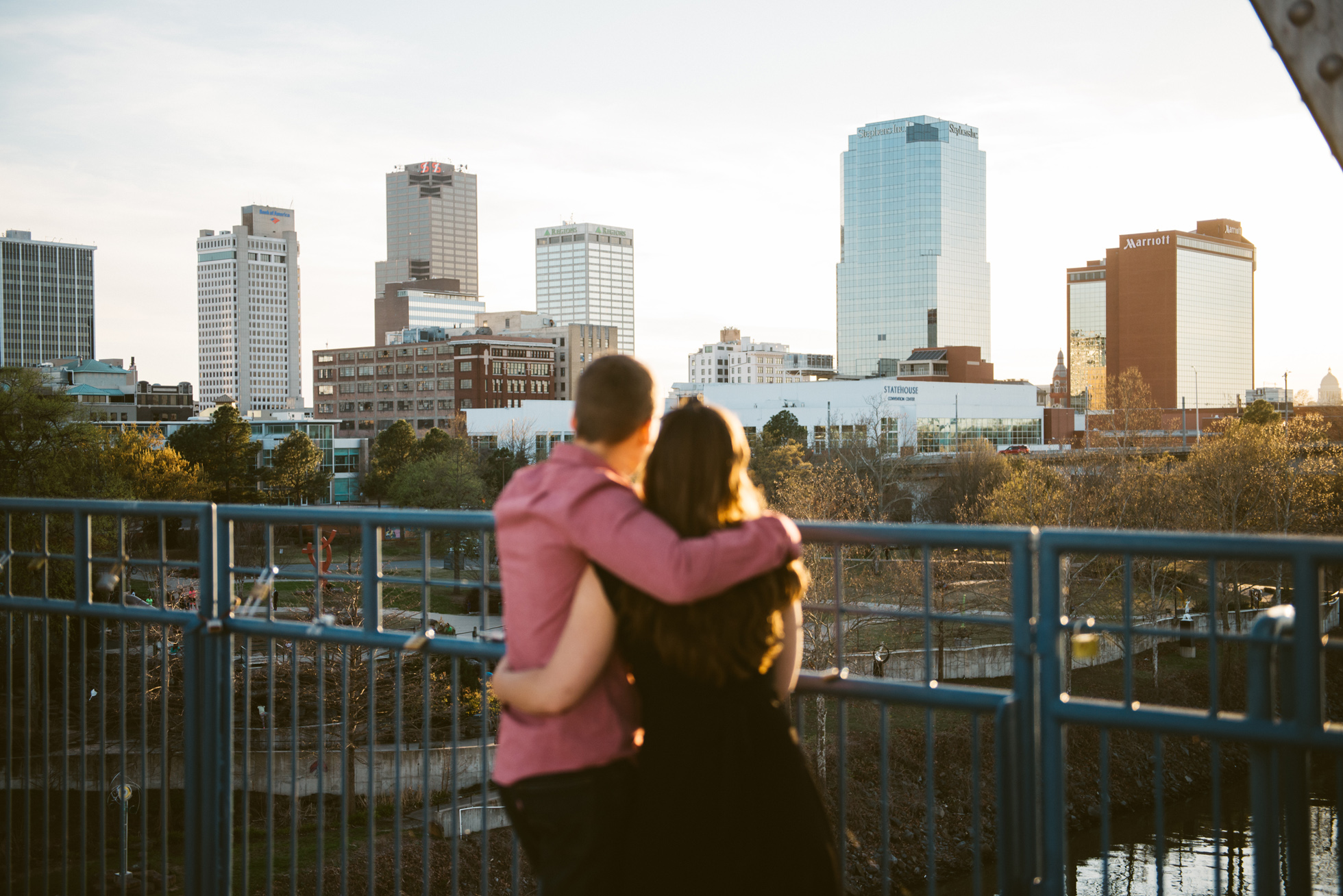 It seemed fitting to take a trip for their engagement session so we met them in Little Rock, Arkansas. The one thing I love about Little Rock is all the bridges! They seems to be everywhere. We met for their engagement session at a park near where he proposed…on a bridge! The Little Rock River Market District is a fun lively area that they explored and as the sun set we ended up on a hill overlooking the river. Little did we know they had memories of picnics on that exact hill. It was a perfect weekend!