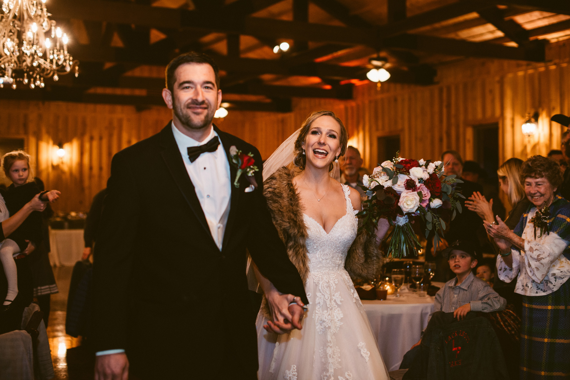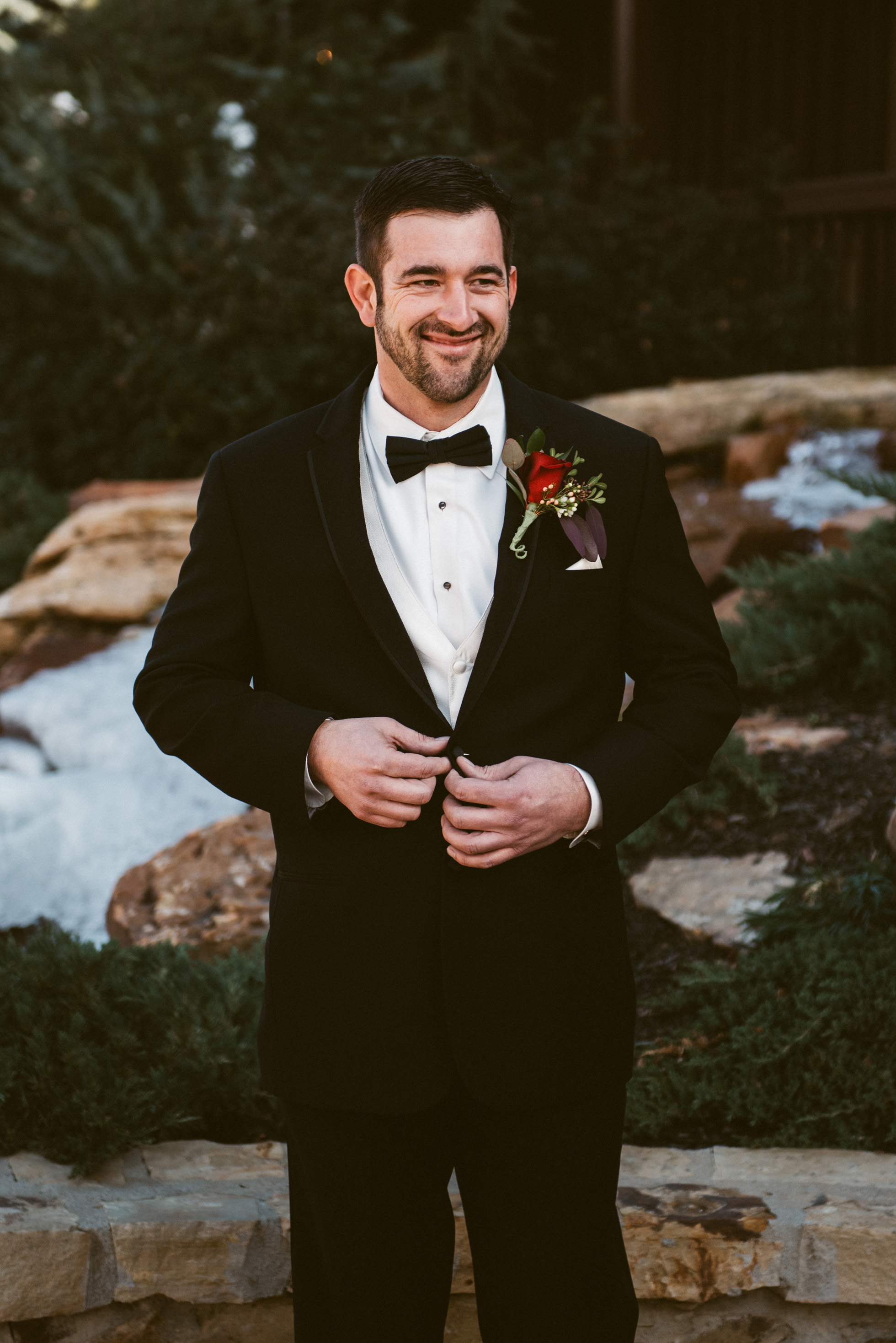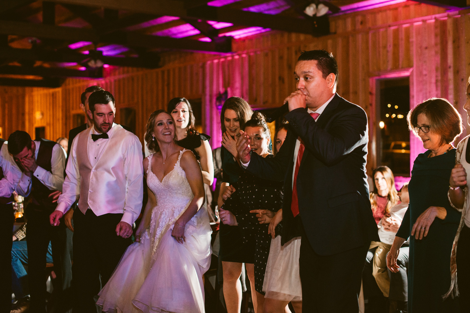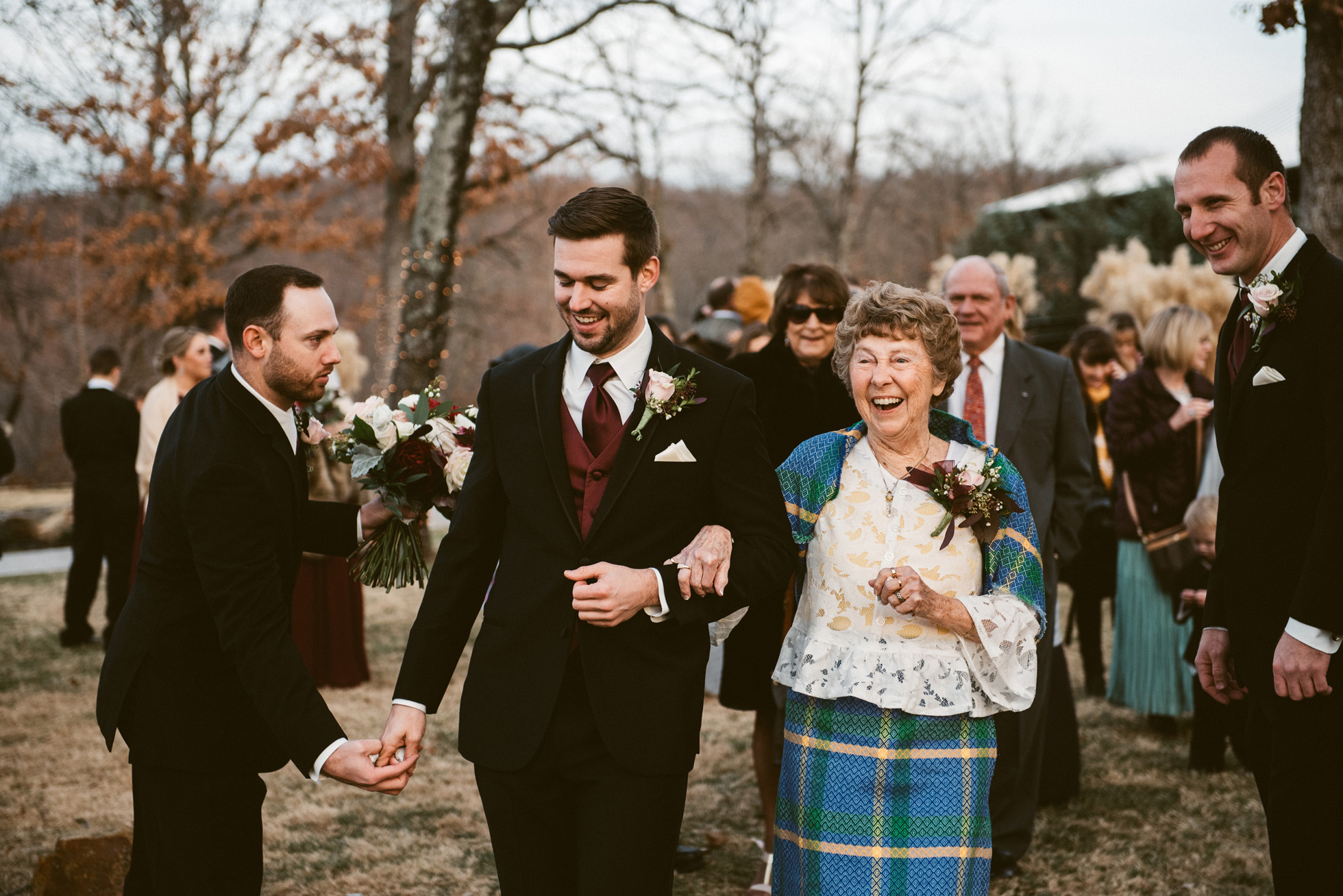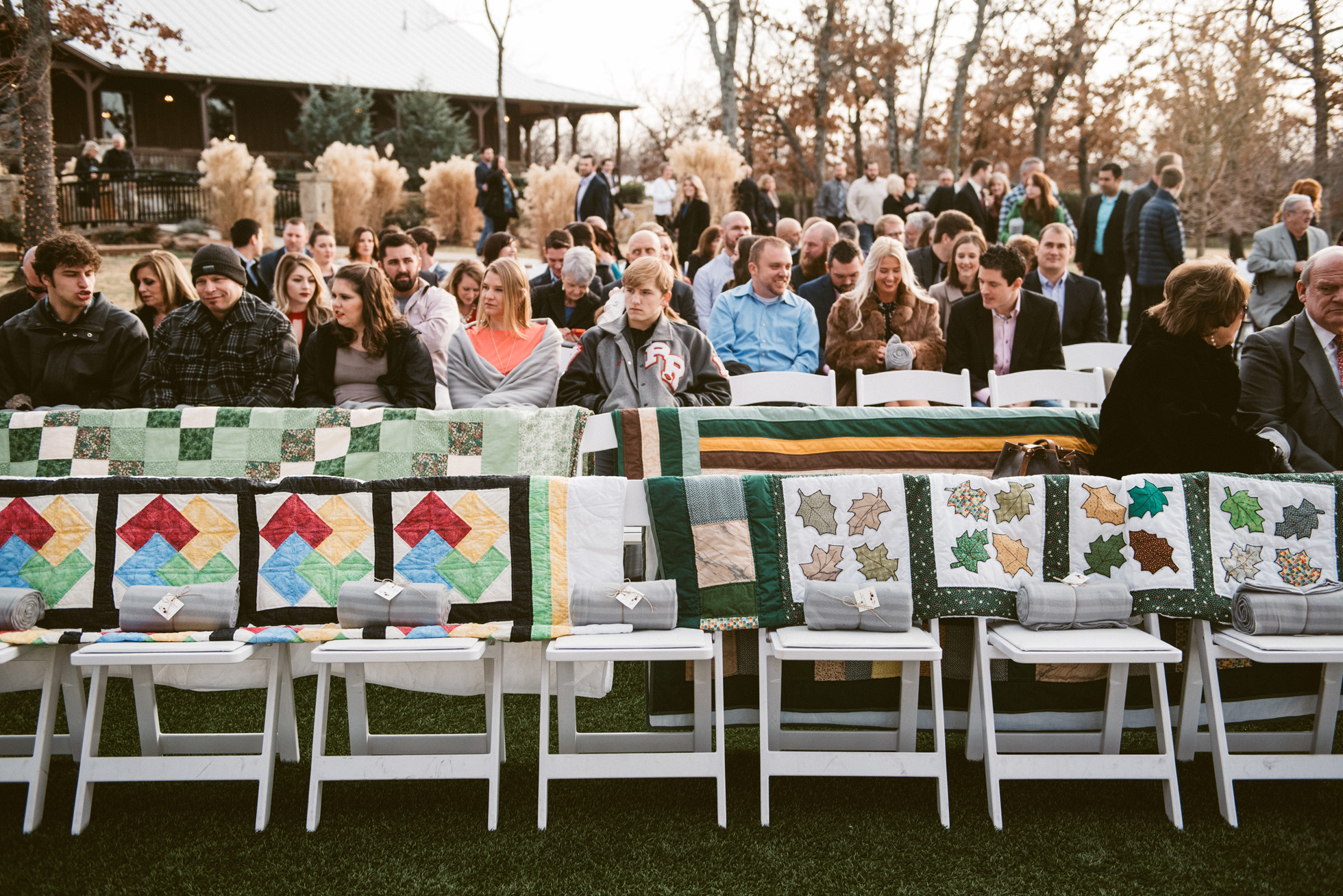 I’ll come out and say it, it was cold! But looking back over the photos, you would think it was a beautiful day…because it was! Jody and Amanda wanted to have a winter wedding so the weather was no surprise. As their big day started, I will never forget all the feels during Amanda’s first look with her Dad. Watching the proud look on his face, and off to the side, her mom welling up with happy tears. Truly, I can’t get enough of this lovely winter wedding. It was cold, freezing, and windy by Skiatook Lake that day even with the bright sun. But there was Amanda, excited, all smiles, exuding joy, and Jody was stoic and handsome as ever. Jody had proposed to Amanda on a hiking trip through Galcier National Park. They are a brave and well travelled couple. So I knew they would be up for anything. The guests cautiously headed outside, snatching a blanket wedding favor along the way. And everyone will forever remember the fun burst of confetti and excitement during this gorgeous couple’s first kiss. They watched the sun set softly over the lake while trying to keep warm with Amanda’s fur wrap and each other’s embrace. The Springs Event Venue in Tulsa, OK was gorgeous! The water bubbling through the ice encrusted stream, and the bridge fringed with pampas grass set against the lakeside backdrop was totally picturesque. The elegant affair was quickly turned into a colorful dance party. Glow sticks danced in the air as a large Love marquee sparkled in the background. The couple was sent off to their next adventure with cheers and of course…more confetti!