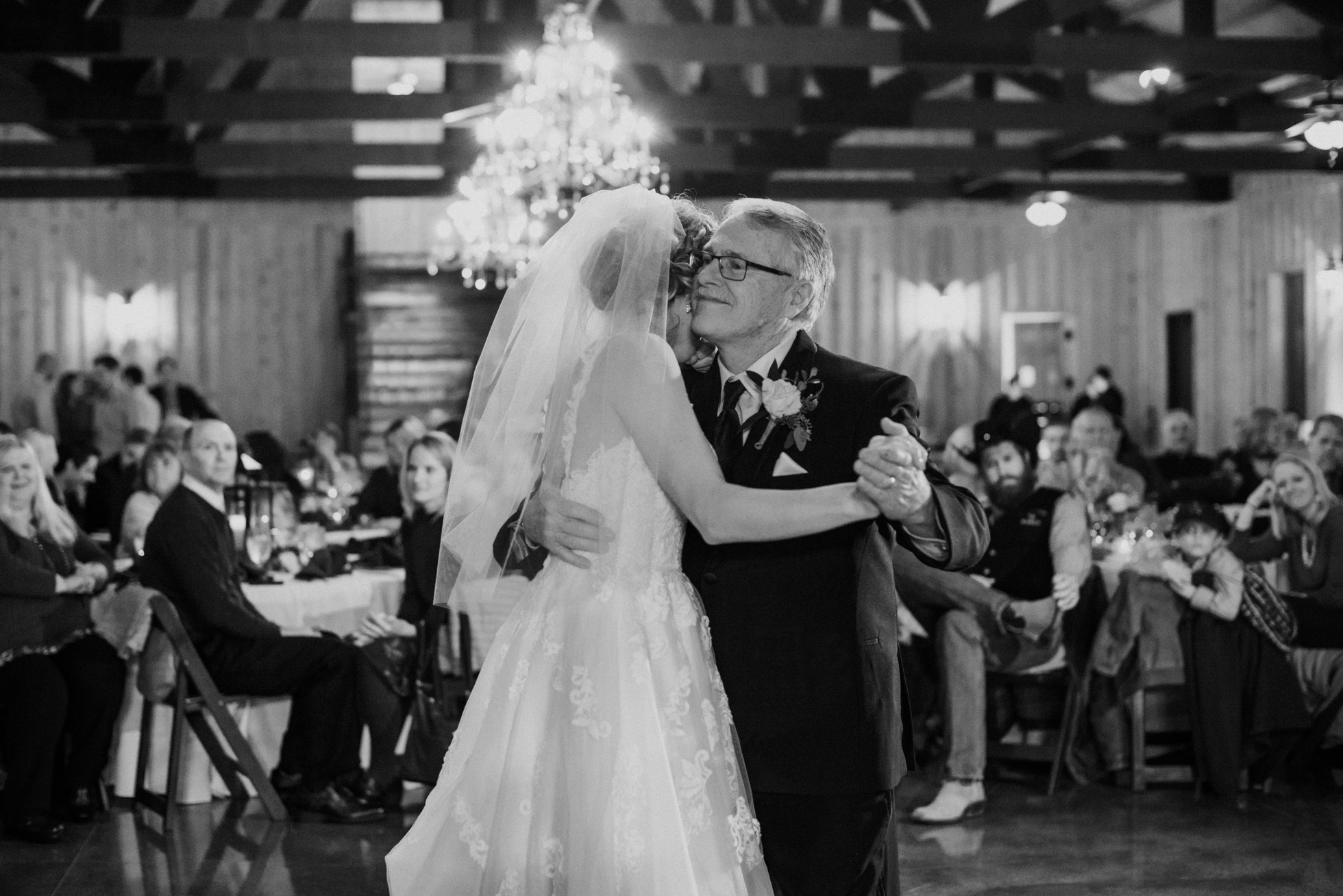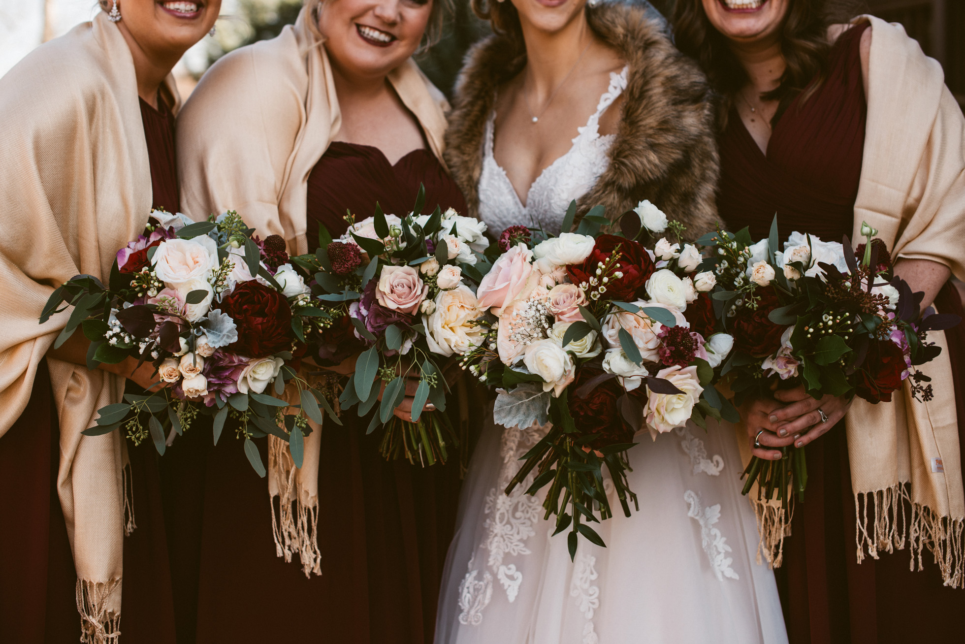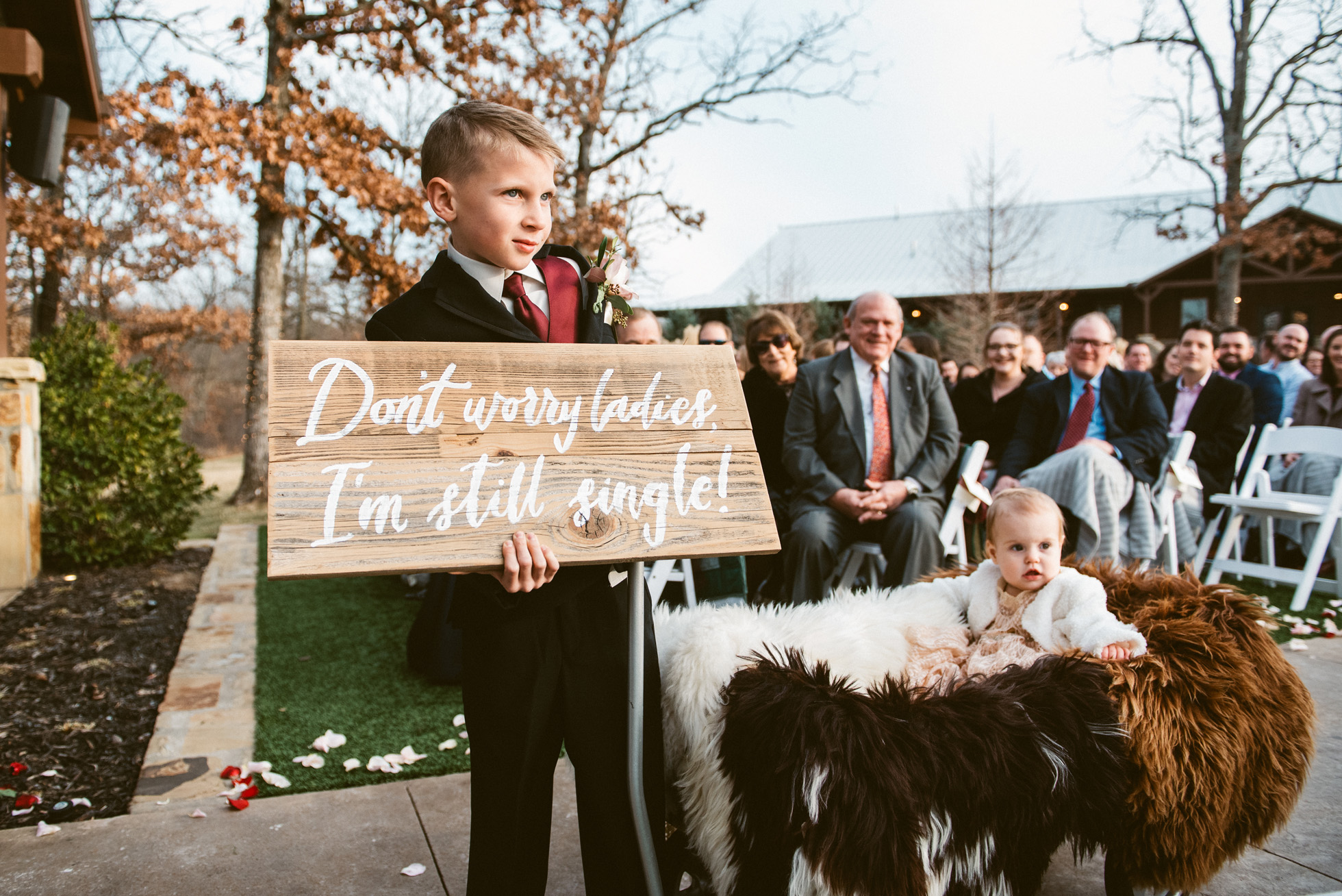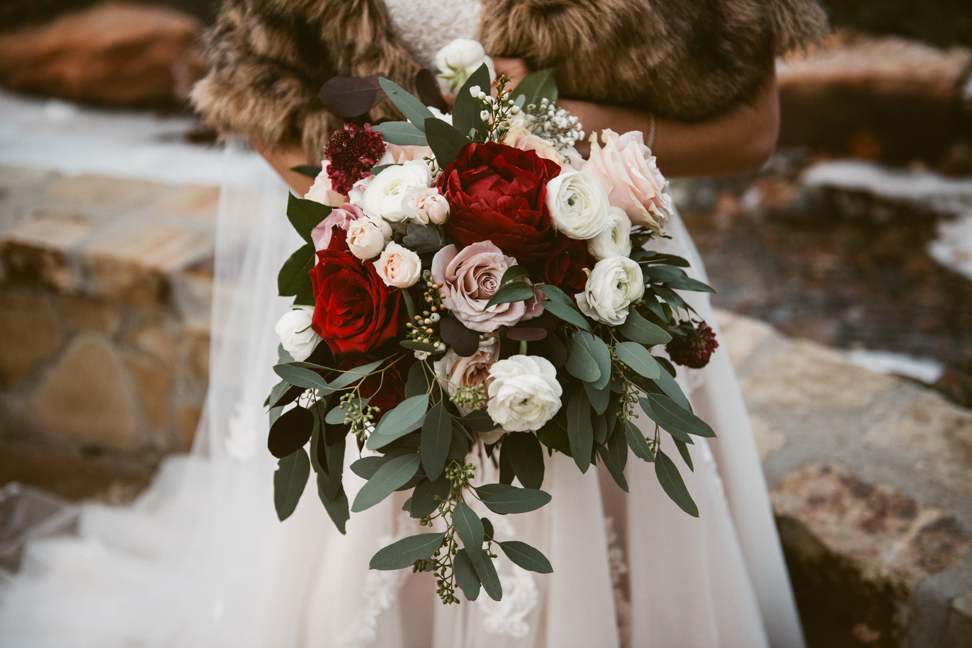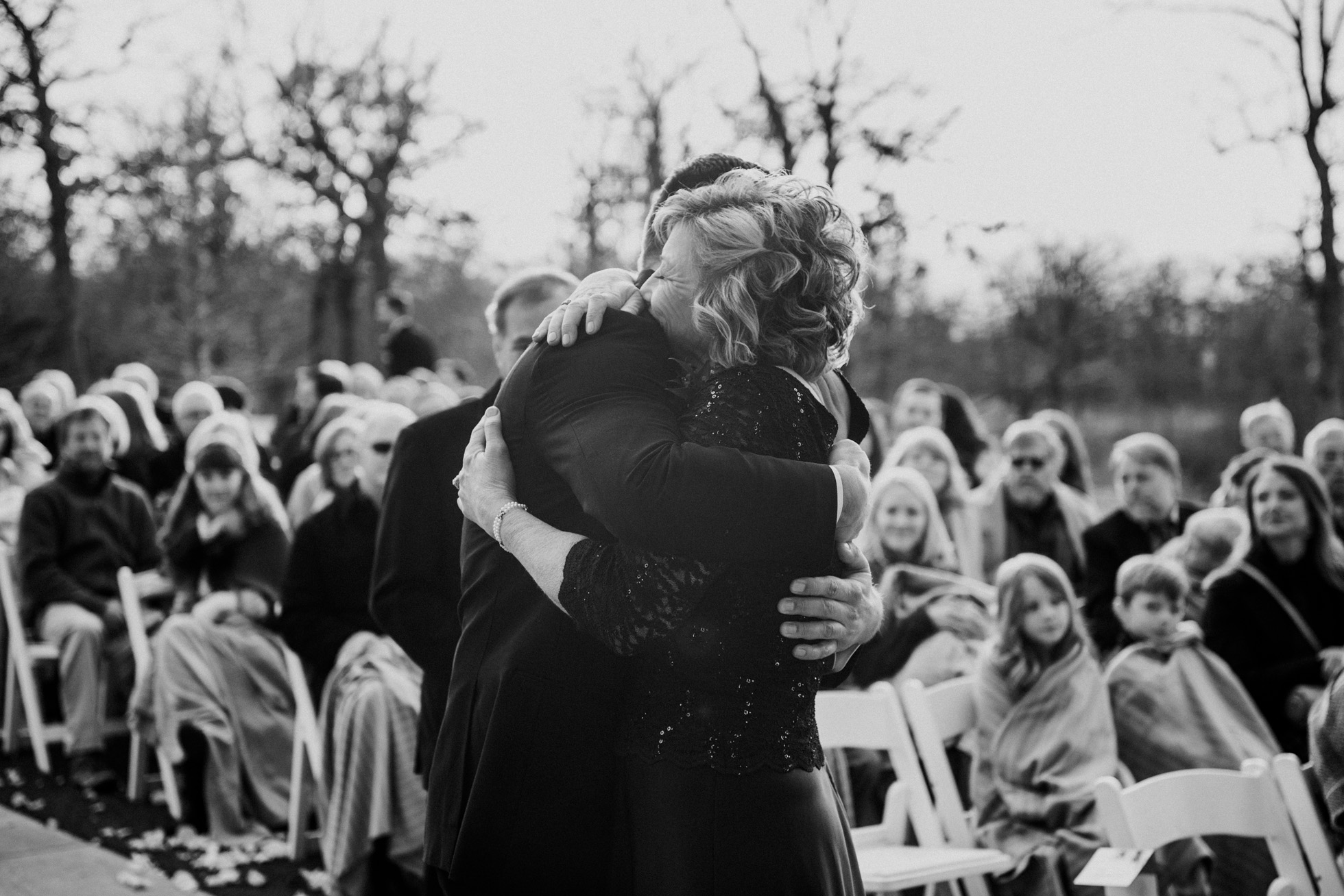 I’ll come out and say it, it was cold! But looking back over the photos, you would think it was a beautiful day…because it was! Jody and Amanda wanted to have a winter wedding so the weather was no surprise. As their big day started, I will never forget all the feels during Amanda’s first look with her Dad. Watching the proud look on his face, and off to the side, her mom welling up with happy tears. Truly, I can’t get enough of this lovely winter wedding. It was cold, freezing, and windy by Skiatook Lake that day even with the bright sun. But there was Amanda, excited, all smiles, exuding joy, and Jody was stoic and handsome as ever. Jody had proposed to Amanda on a hiking trip through Galcier National Park. They are a brave and well travelled couple. So I knew they would be up for anything. The guests cautiously headed outside, snatching a blanket wedding favor along the way. And everyone will forever remember the fun burst of confetti and excitement during this gorgeous couple’s first kiss. They watched the sun set softly over the lake while trying to keep warm with Amanda’s fur wrap and each other’s embrace. The Springs Event Venue in Tulsa, OK was gorgeous! The water bubbling through the ice encrusted stream, and the bridge fringed with pampas grass set against the lakeside backdrop was totally picturesque. The elegant affair was quickly turned into a colorful dance party. Glow sticks danced in the air as a large Love marquee sparkled in the background. The couple was sent off to their next adventure with cheers and of course…more confetti!