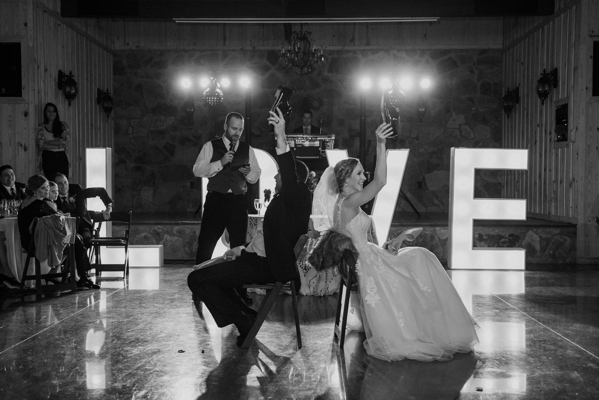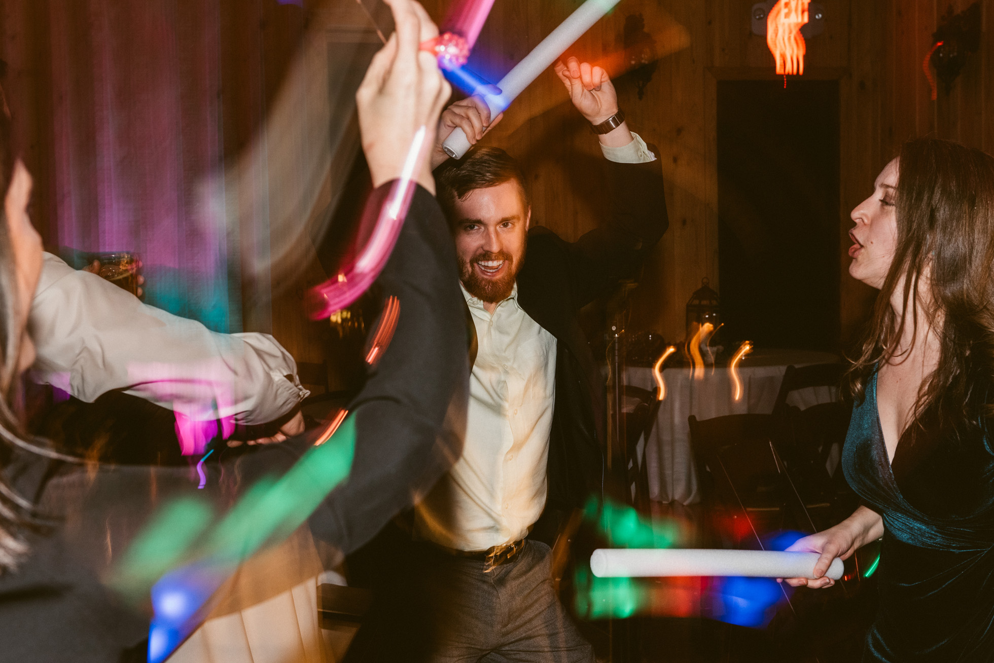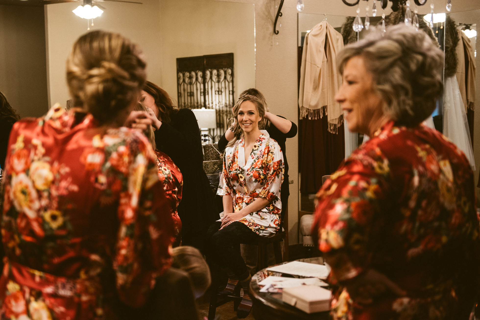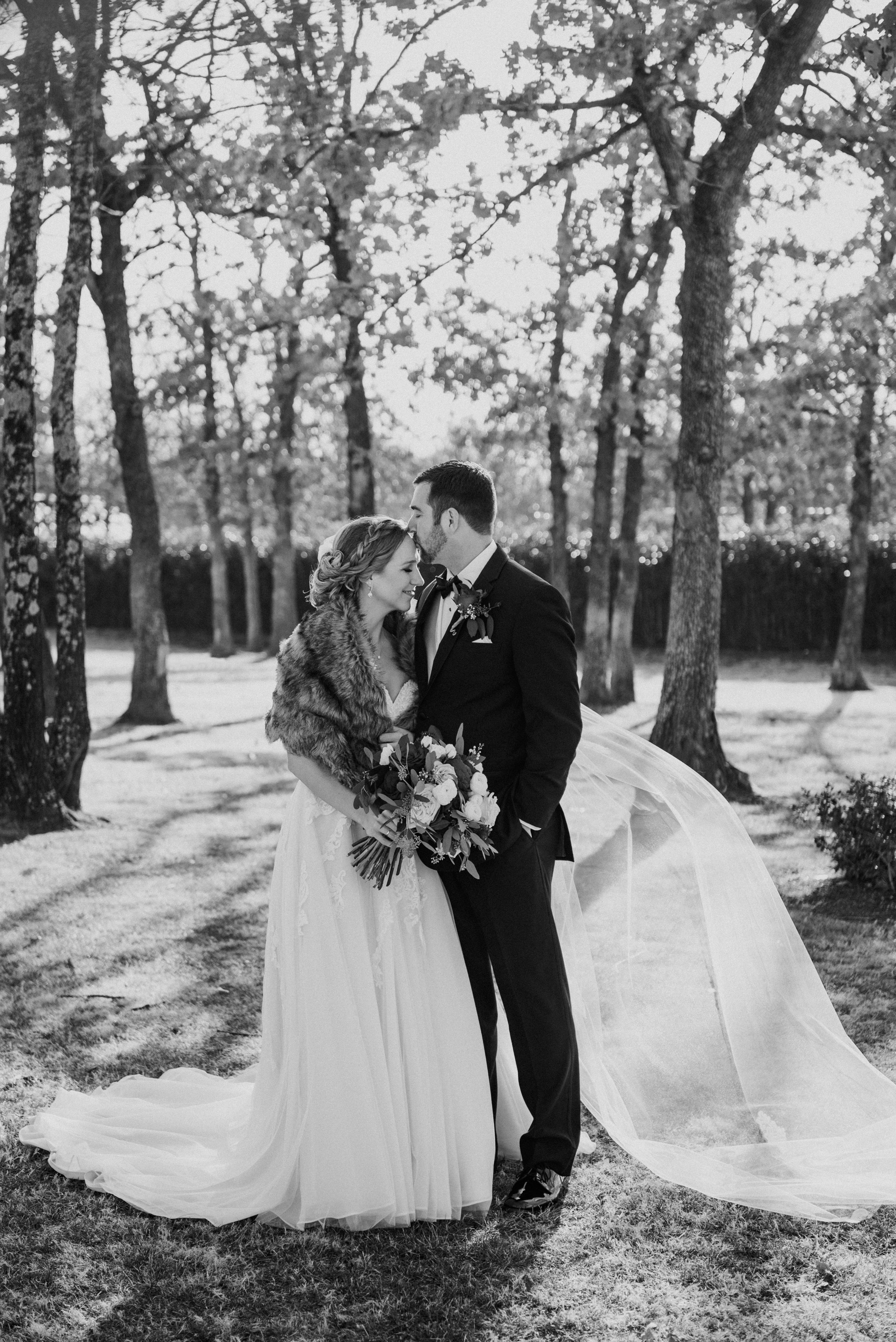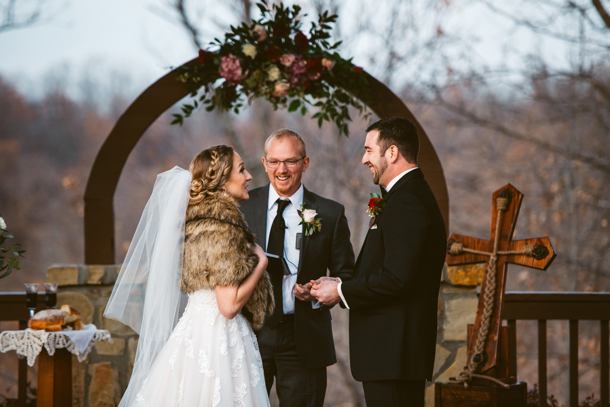I’ll come out and say it, it was cold! But looking back over the photos, you would think it was a beautiful day…because it was! Jody and Amanda wanted to have a winter wedding so the weather was no surprise. As their big day started, I will never forget all the feels during Amanda’s first look with her Dad. Watching the proud look on his face, and off to the side, her mom welling up with happy tears. Truly, I can’t get enough of this lovely winter wedding. It was cold, freezing, and windy by Skiatook Lake that day even with the bright sun. But there was Amanda, excited, all smiles, exuding joy, and Jody was stoic and handsome as ever. Jody had proposed to Amanda on a hiking trip through Galcier National Park. They are a brave and well travelled couple. So I knew they would be up for anything. The guests cautiously headed outside, snatching a blanket wedding favor along the way. And everyone will forever remember the fun burst of confetti and excitement during this gorgeous couple’s first kiss. They watched the sun set softly over the lake while trying to keep warm with Amanda’s fur wrap and each other’s embrace. The Springs Event Venue in Tulsa, OK was gorgeous! The water bubbling through the ice encrusted stream, and the bridge fringed with pampas grass set against the lakeside backdrop was totally picturesque. The elegant affair was quickly turned into a colorful dance party. Glow sticks danced in the air as a large Love marquee sparkled in the background. The couple was sent off to their next adventure with cheers and of course…more confetti!