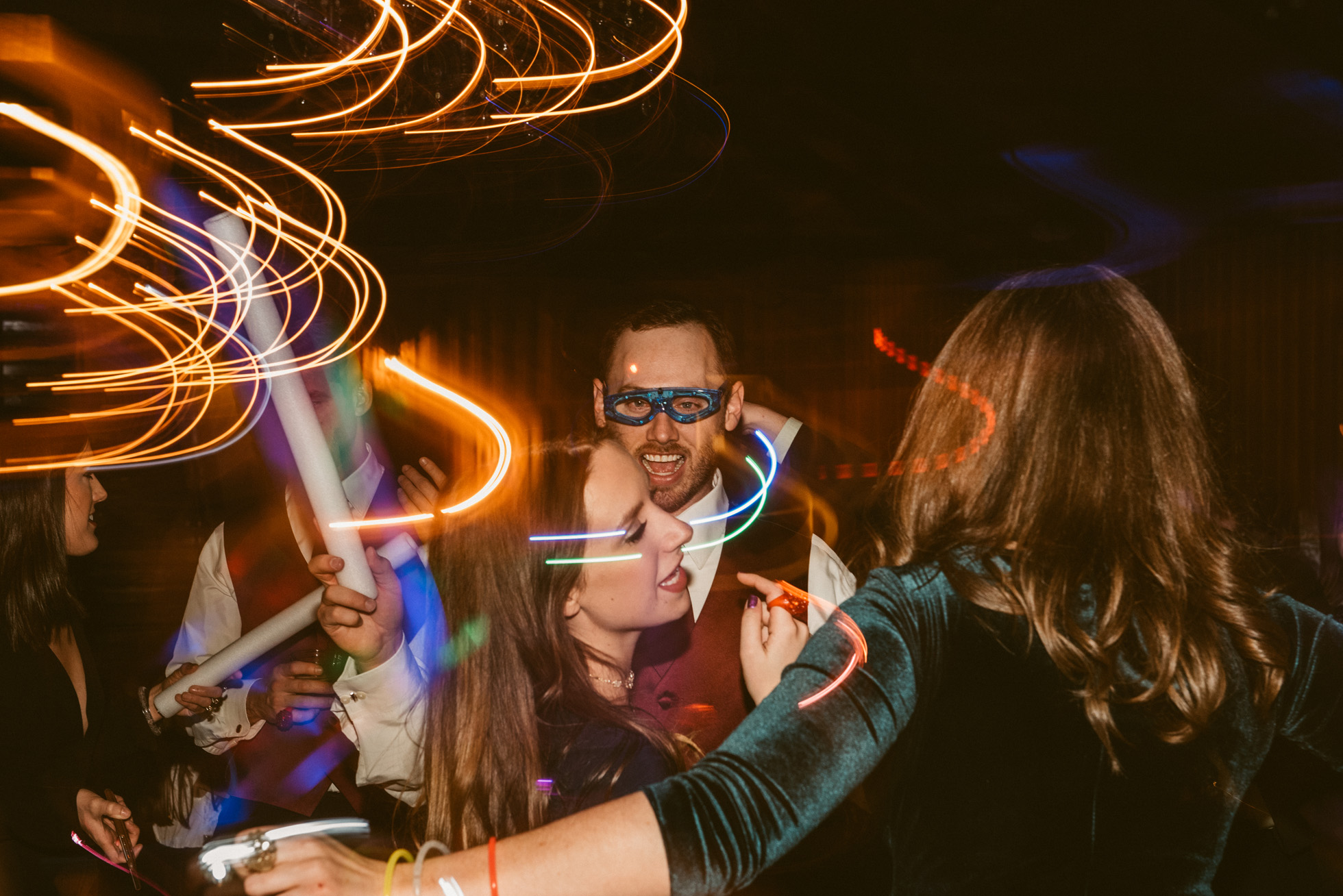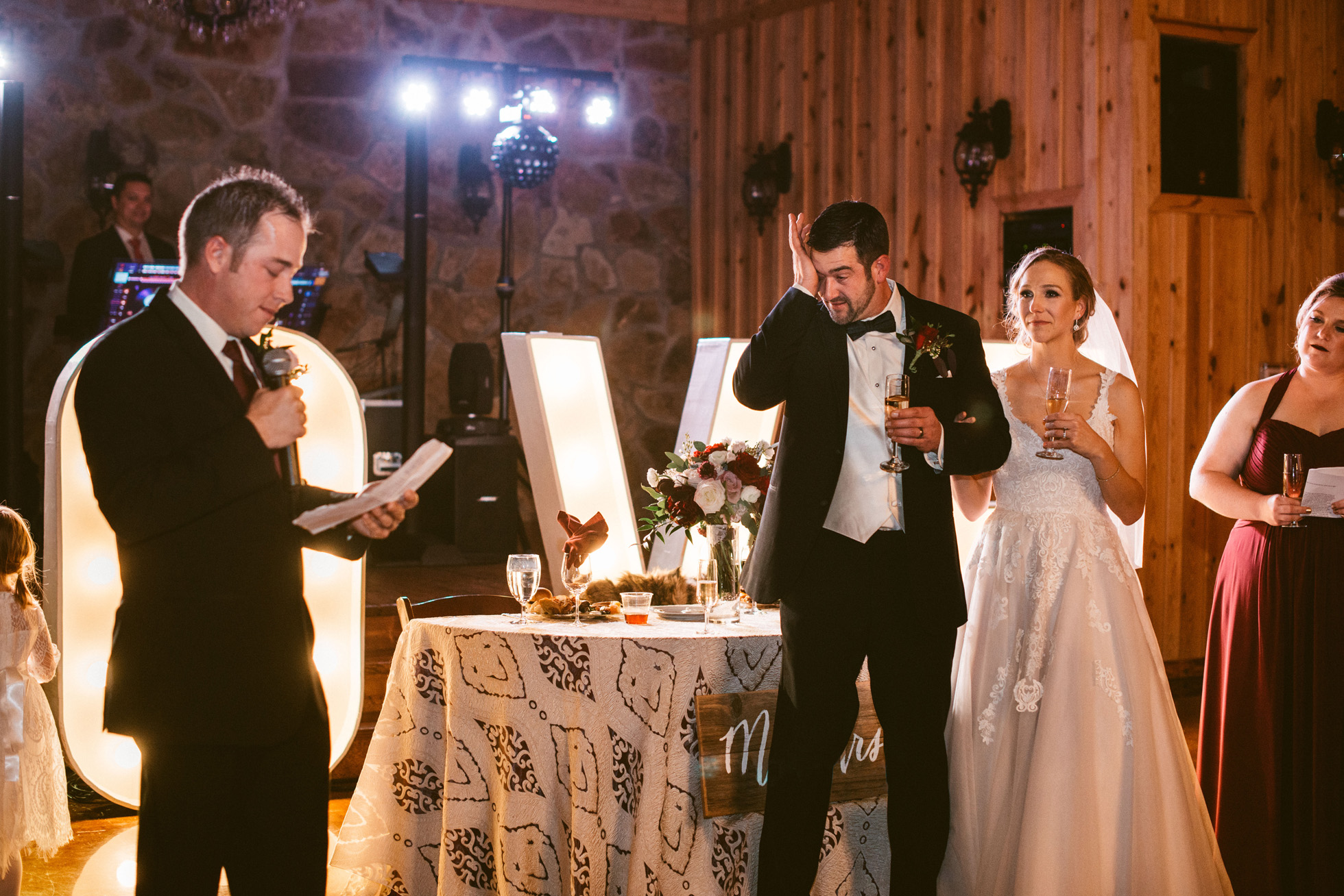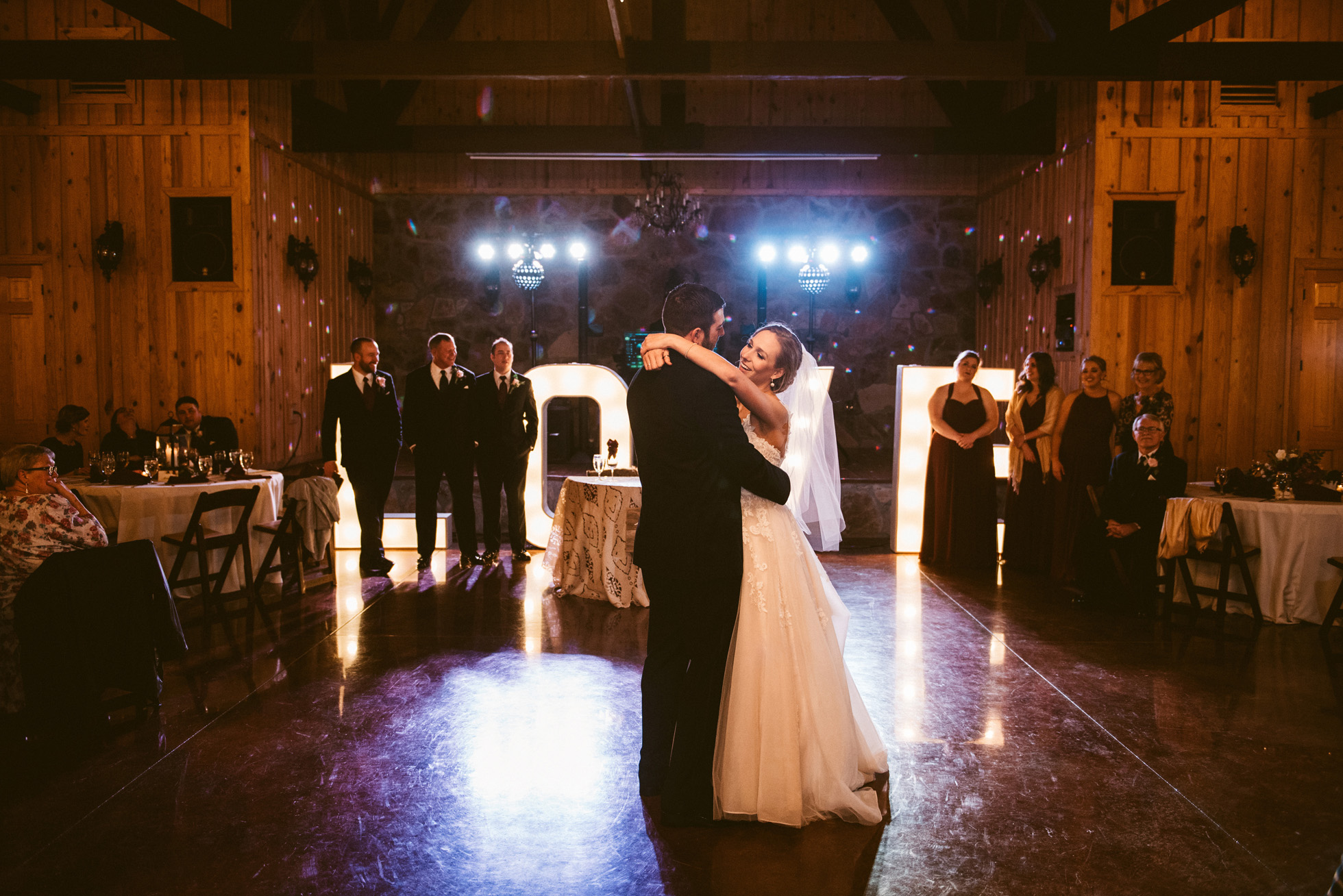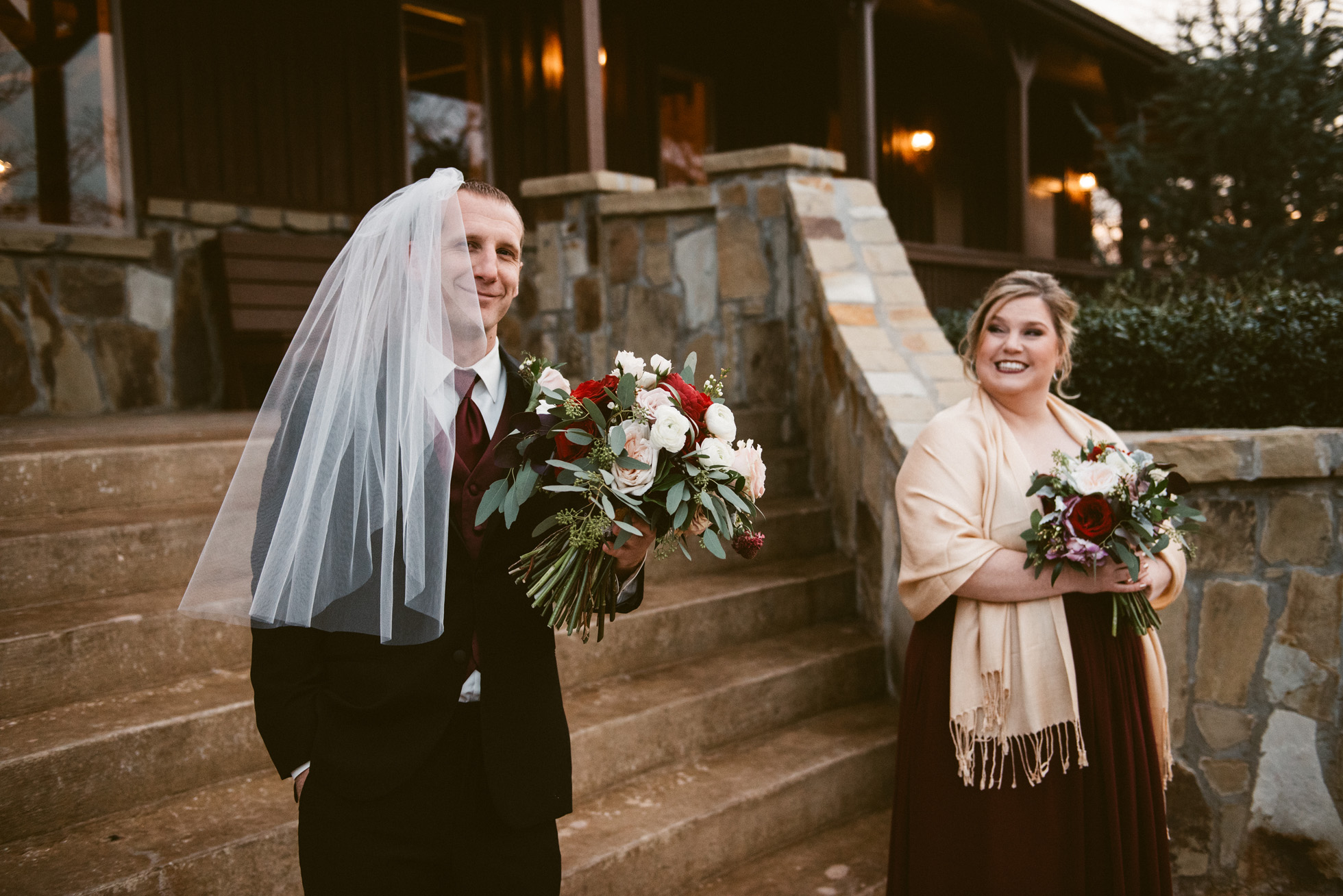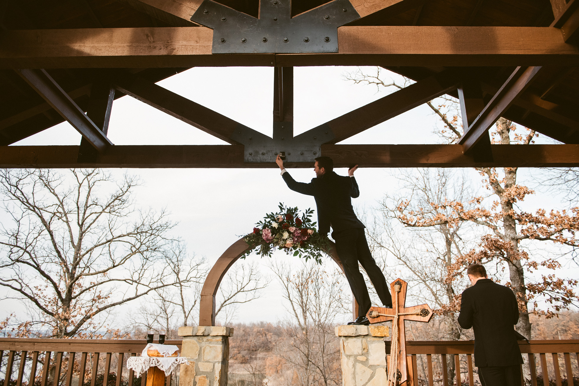 I’ll come out and say it, it was cold! But looking back over the photos, you would think it was a beautiful day…because it was! Jody and Amanda wanted to have a winter wedding so the weather was no surprise. As their big day started, I will never forget all the feels during Amanda’s first look with her Dad. Watching the proud look on his face, and off to the side, her mom welling up with happy tears. Truly, I can’t get enough of this lovely winter wedding. It was cold, freezing, and windy by Skiatook Lake that day even with the bright sun. But there was Amanda, excited, all smiles, exuding joy, and Jody was stoic and handsome as ever. Jody had proposed to Amanda on a hiking trip through Galcier National Park. They are a brave and well travelled couple. So I knew they would be up for anything. The guests cautiously headed outside, snatching a blanket wedding favor along the way. And everyone will forever remember the fun burst of confetti and excitement during this gorgeous couple’s first kiss. They watched the sun set softly over the lake while trying to keep warm with Amanda’s fur wrap and each other’s embrace. The Springs Event Venue in Tulsa, OK was gorgeous! The water bubbling through the ice encrusted stream, and the bridge fringed with pampas grass set against the lakeside backdrop was totally picturesque. The elegant affair was quickly turned into a colorful dance party. Glow sticks danced in the air as a large Love marquee sparkled in the background. The couple was sent off to their next adventure with cheers and of course…more confetti!