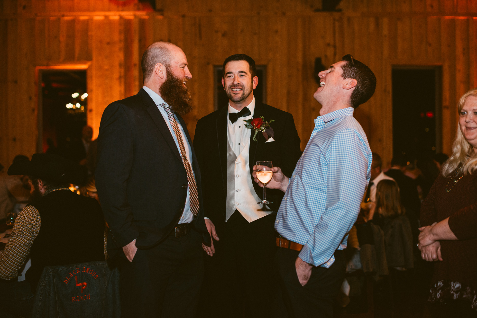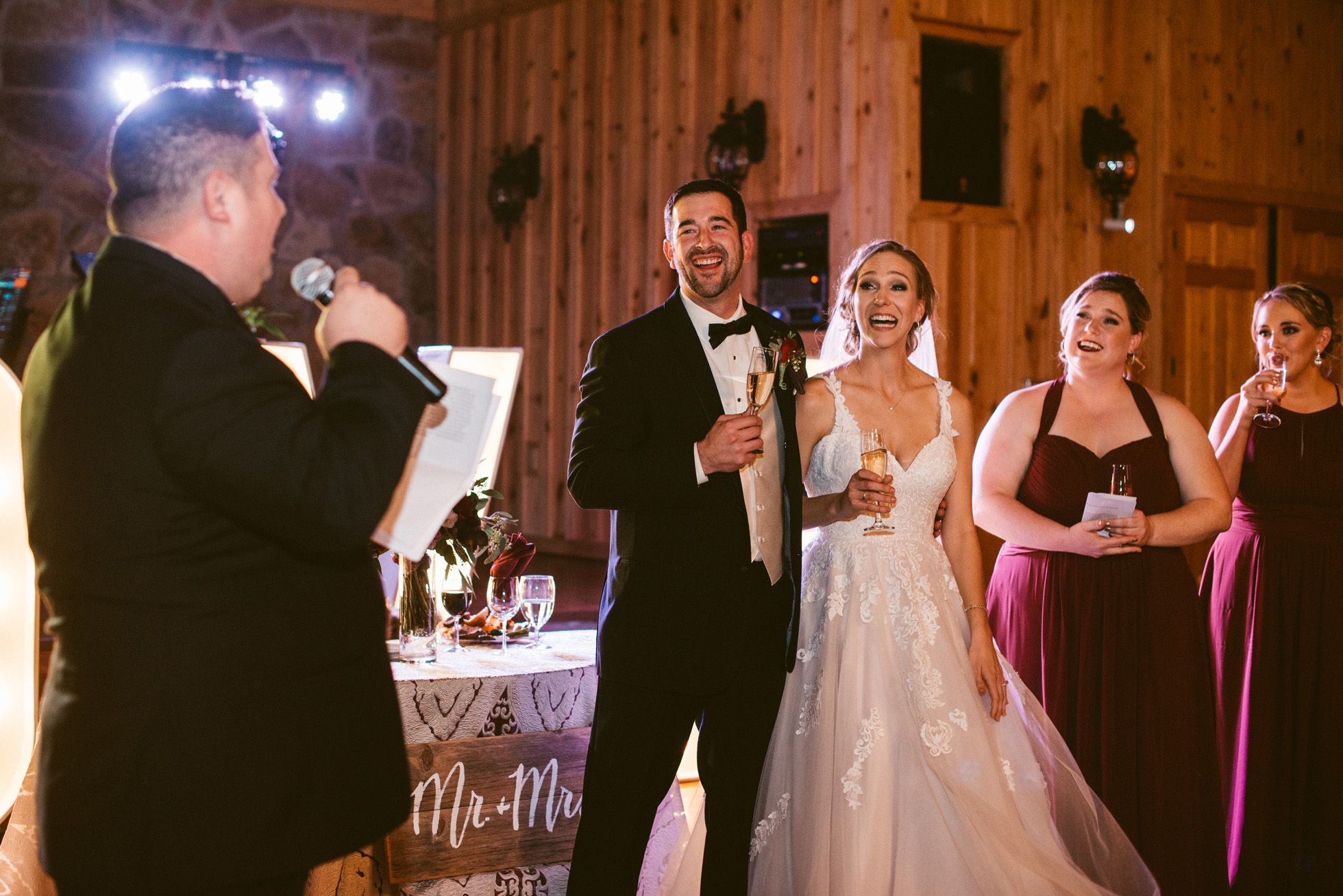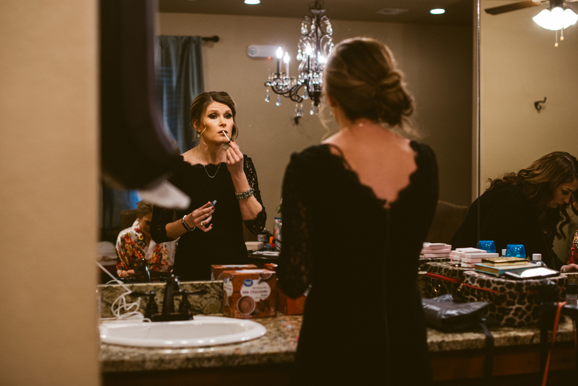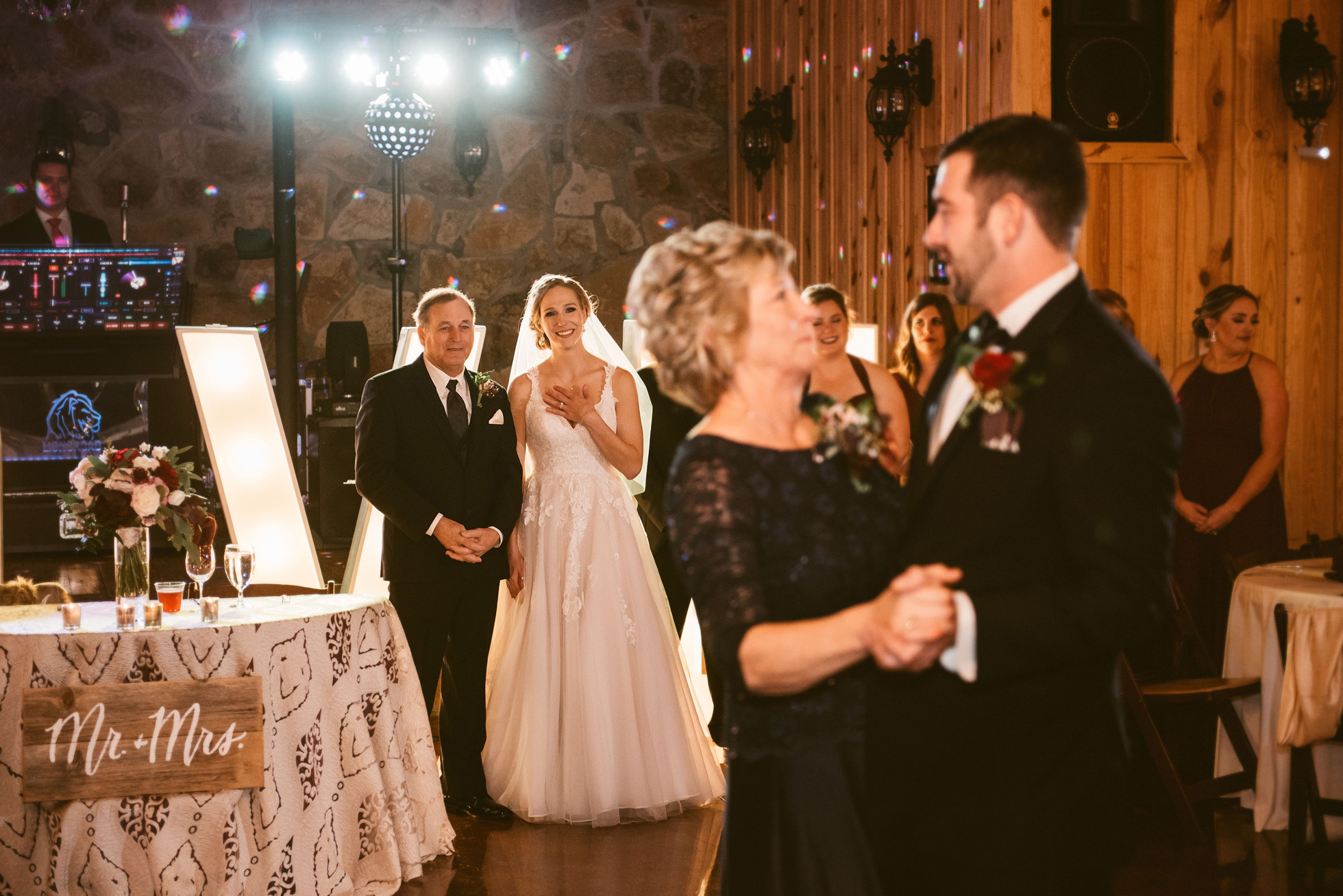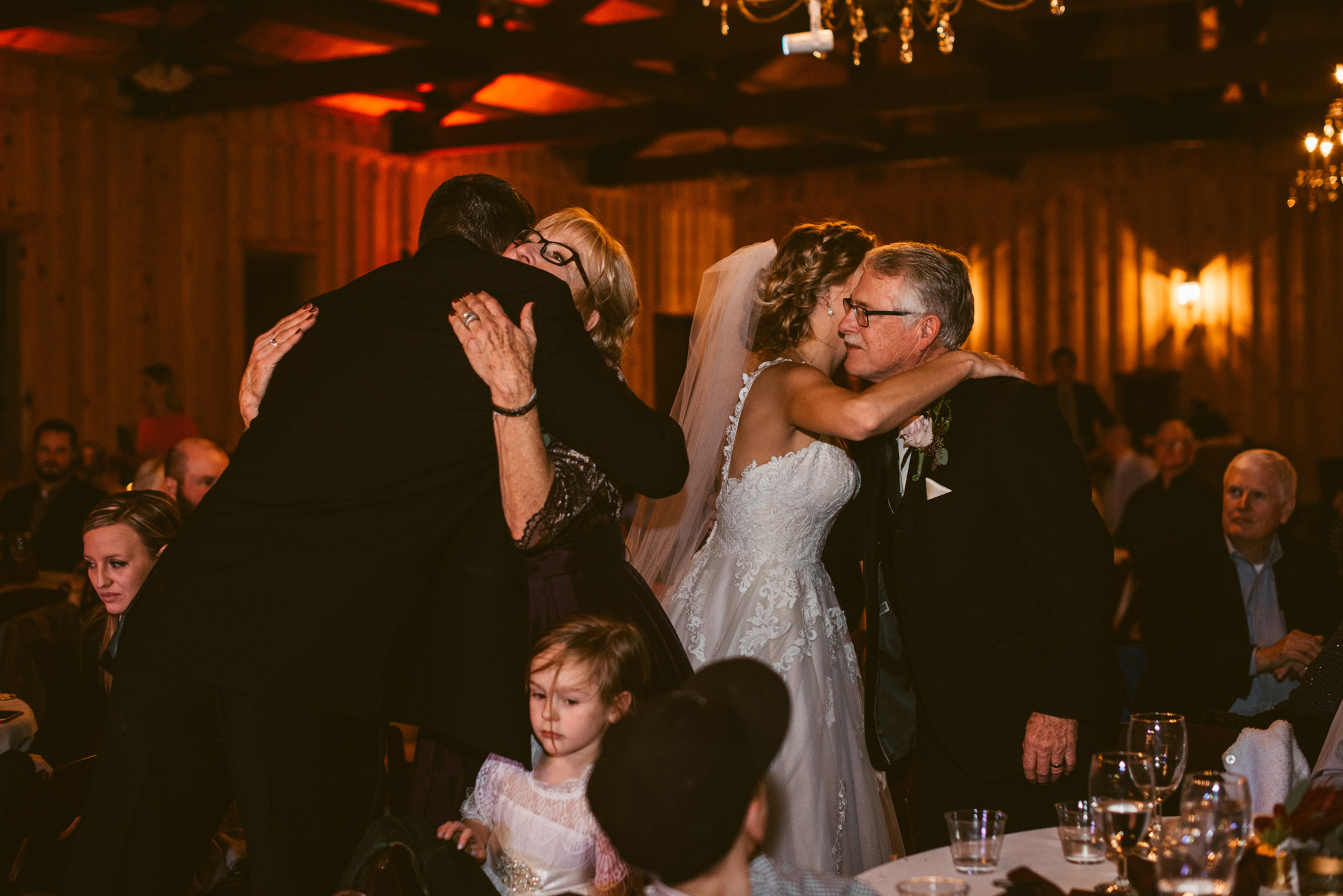I’ll come out and say it, it was cold! But looking back over the photos, you would think it was a beautiful day…because it was! Jody and Amanda wanted to have a winter wedding so the weather was no surprise. As their big day started, I will never forget all the feels during Amanda’s first look with her Dad. Watching the proud look on his face, and off to the side, her mom welling up with happy tears. Truly, I can’t get enough of this lovely winter wedding. It was cold, freezing, and windy by Skiatook Lake that day even with the bright sun. But there was Amanda, excited, all smiles, exuding joy, and Jody was stoic and handsome as ever. Jody had proposed to Amanda on a hiking trip through Galcier National Park. They are a brave and well travelled couple. So I knew they would be up for anything. The guests cautiously headed outside, snatching a blanket wedding favor along the way. And everyone will forever remember the fun burst of confetti and excitement during this gorgeous couple’s first kiss. They watched the sun set softly over the lake while trying to keep warm with Amanda’s fur wrap and each other’s embrace. The Springs Event Venue in Tulsa, OK was gorgeous! The water bubbling through the ice encrusted stream, and the bridge fringed with pampas grass set against the lakeside backdrop was totally picturesque. The elegant affair was quickly turned into a colorful dance party. Glow sticks danced in the air as a large Love marquee sparkled in the background. The couple was sent off to their next adventure with cheers and of course…more confetti!